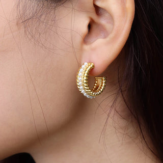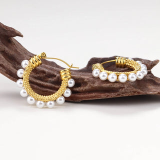 316Lサージカルステンレス 18Kゴールドメッキ ピアス フープ パール【NY01839】