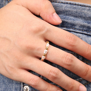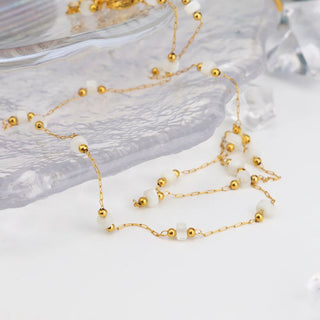 316Lサージカルステンレス 18Kゴールドメッキ リング チェーン シェル パール【NY01876】