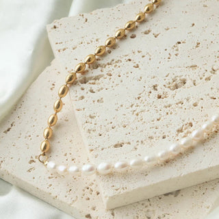 316Lサージカルステンレス 18Kゴールドメッキ ネックレス パール【NY01873】