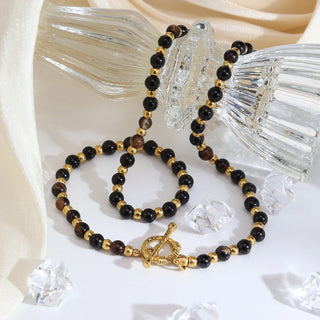 316Lサージカルステンレス 18Kゴールドメッキ ネックレス チェーン Tバー ビーズ【NY01872】