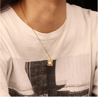 316Lサージカルステンレス 18Kゴールドメッキ ネックレス スクエア パール【NY01851】