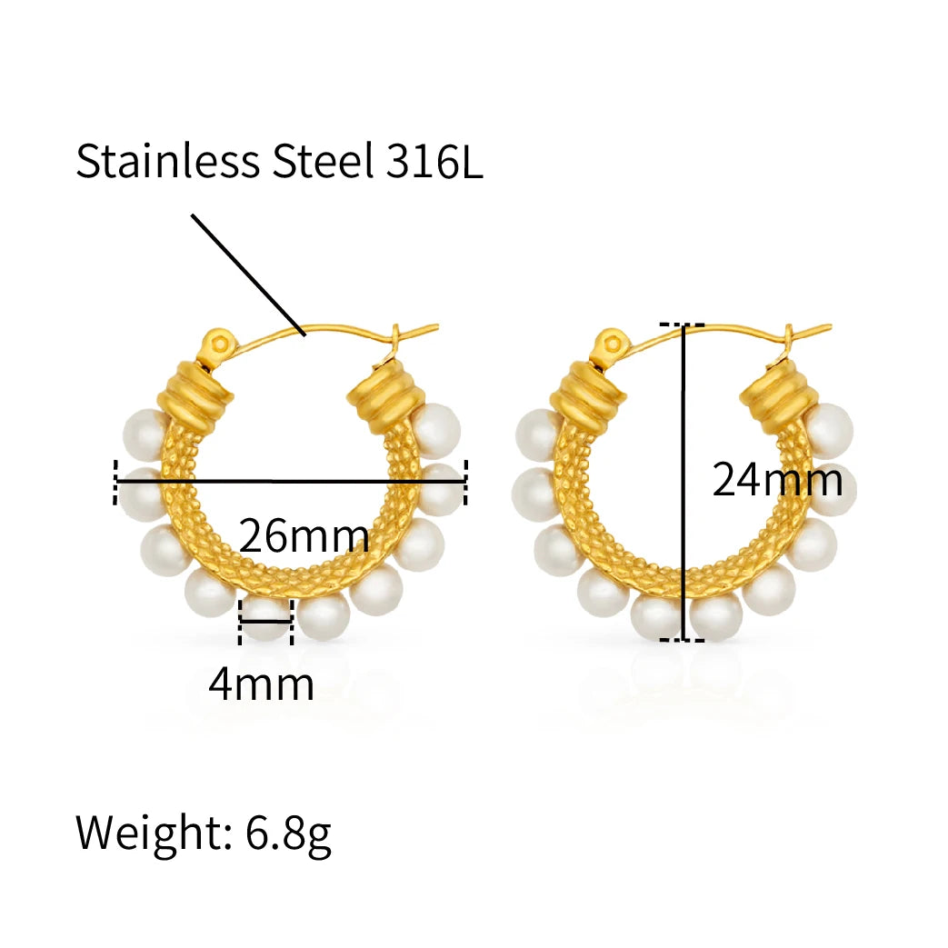 316Lサージカルステンレス 18Kゴールドメッキ ピアス フープ パール【NY01839】