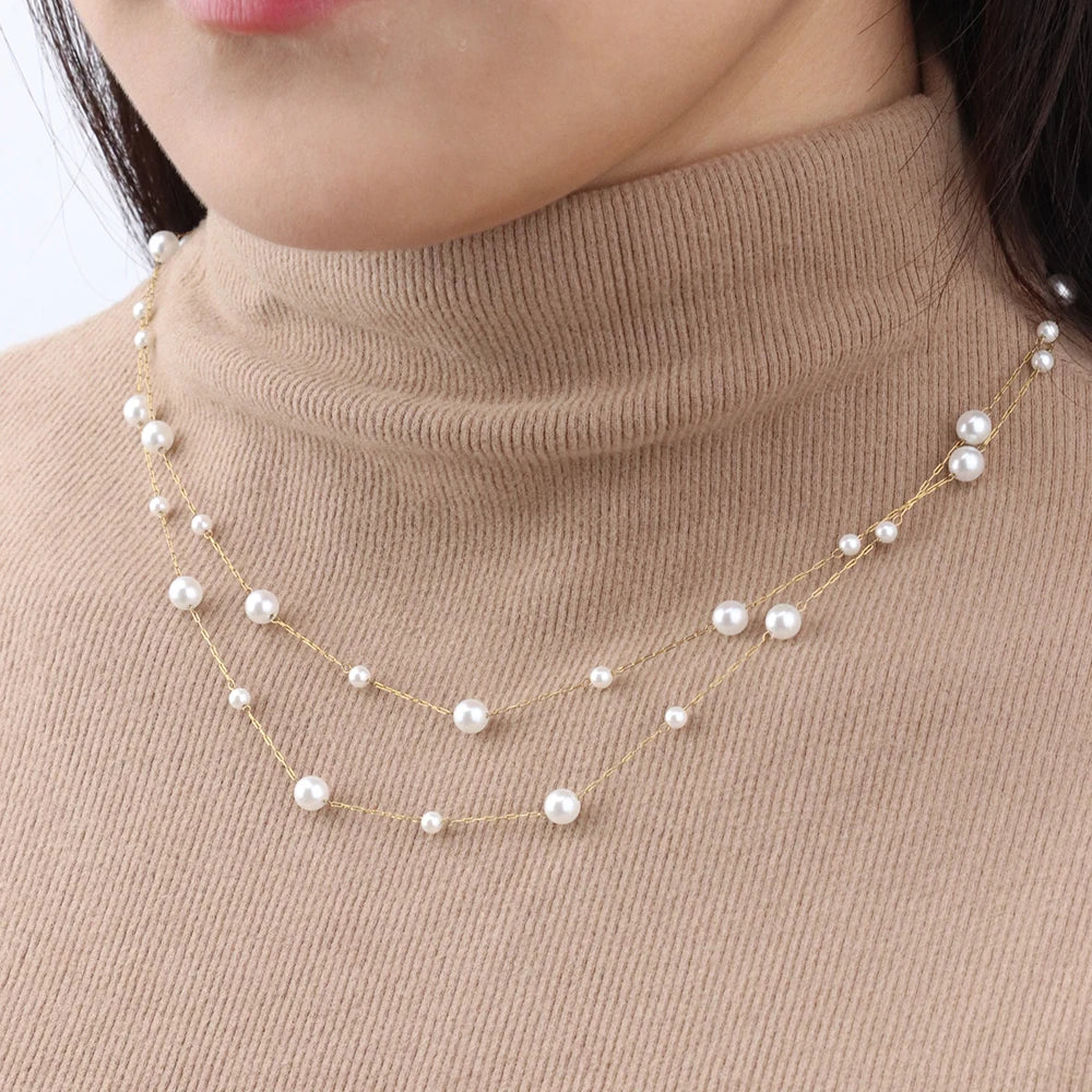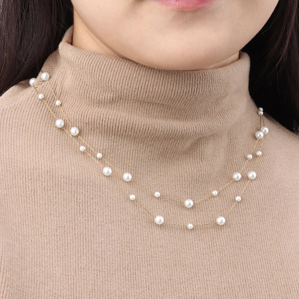 316Lサージカルステンレス ネックレス 2層 チェーン パール【NY01852】