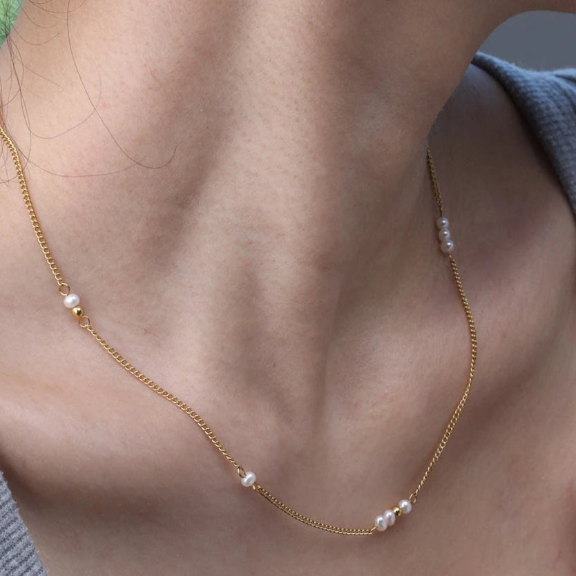 316Lサージカルステンレス ネックレス チェーン パール【NY01861】