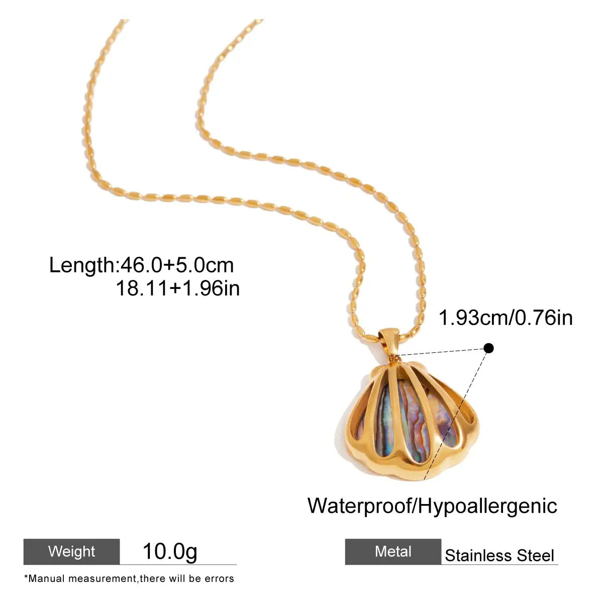 ステンレス304 ニッケルフリー 水に濡れても錆びにくい 18Kゴールドメッキ ネックレス シェル 貝殻 【YJ00001】