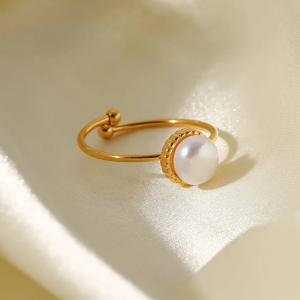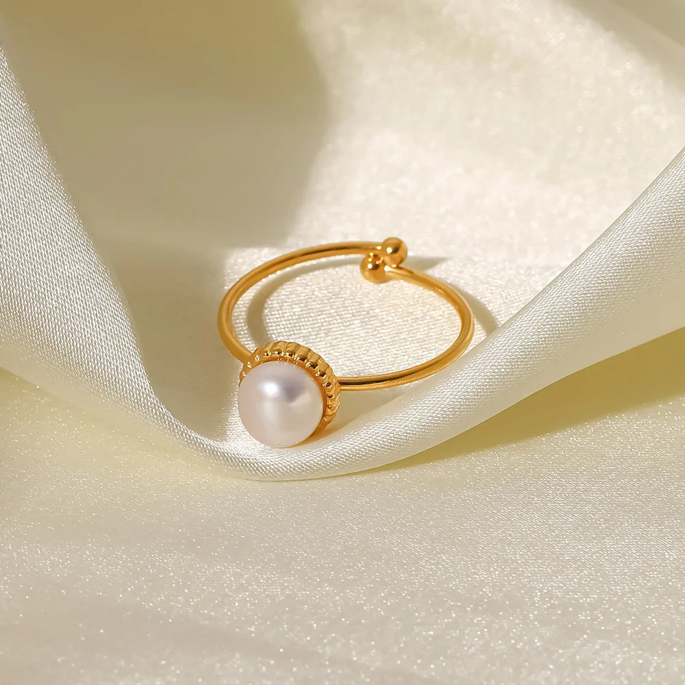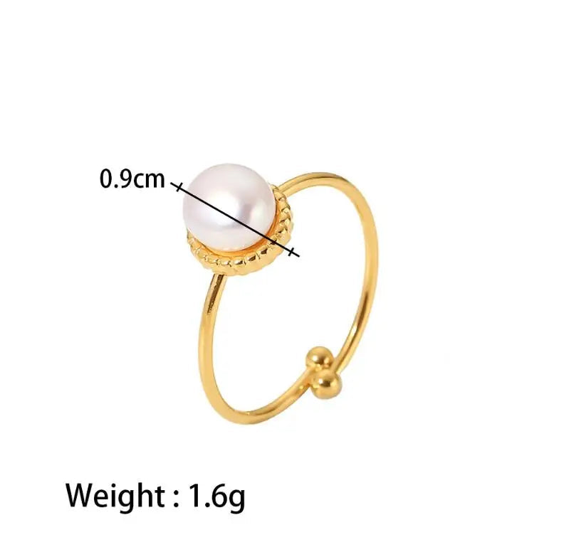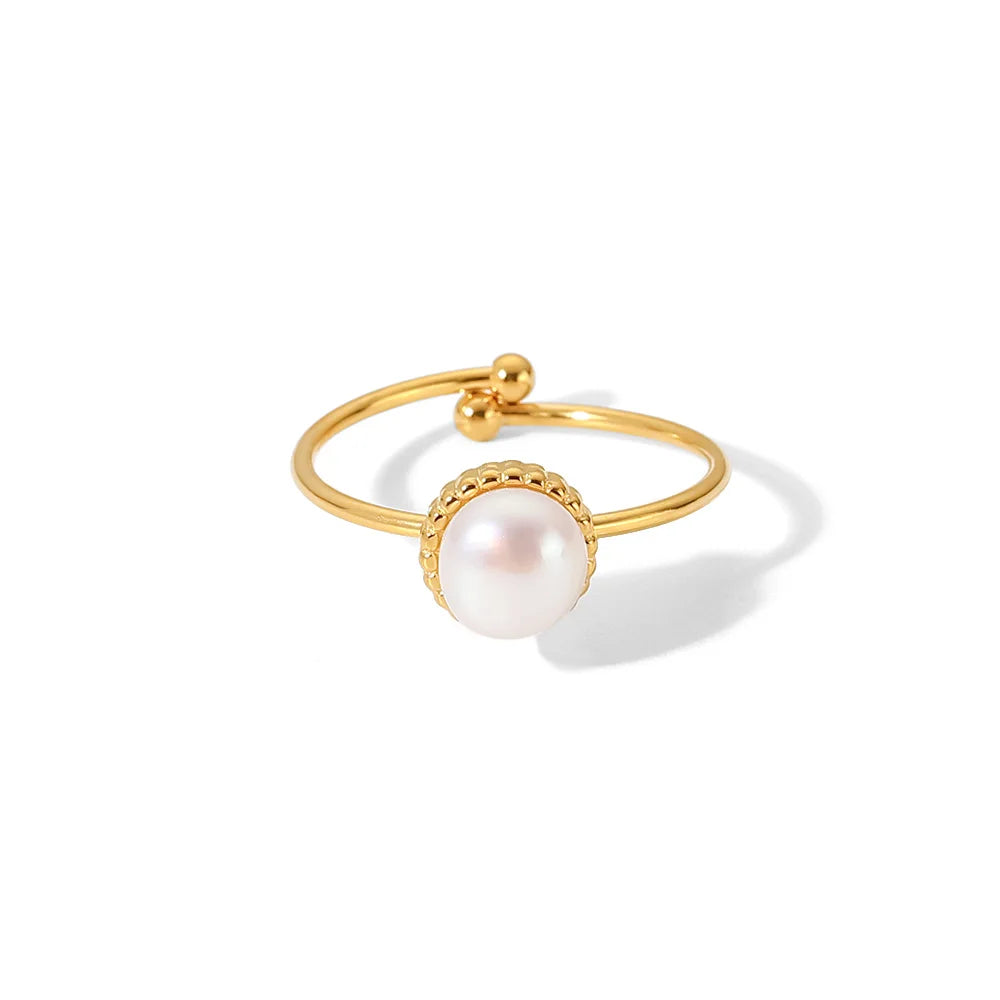 ステンレス304 低ニッケル 水に濡れても錆びにくい 18Kゴールドメッキ リング パール 【YJ01746】
