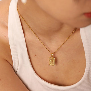 ステンレス304 低ニッケル 水に濡れても錆びにくい 18Kゴールドメッキ ネックレス スクエア 天使 エンジェル【YJ01819】