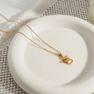 ステンレス304 低ニッケル 水に濡れても錆びにくい 18Kゴールドメッキ ネックレス 天使 エンジェル ジルコニア 【YJ02730】