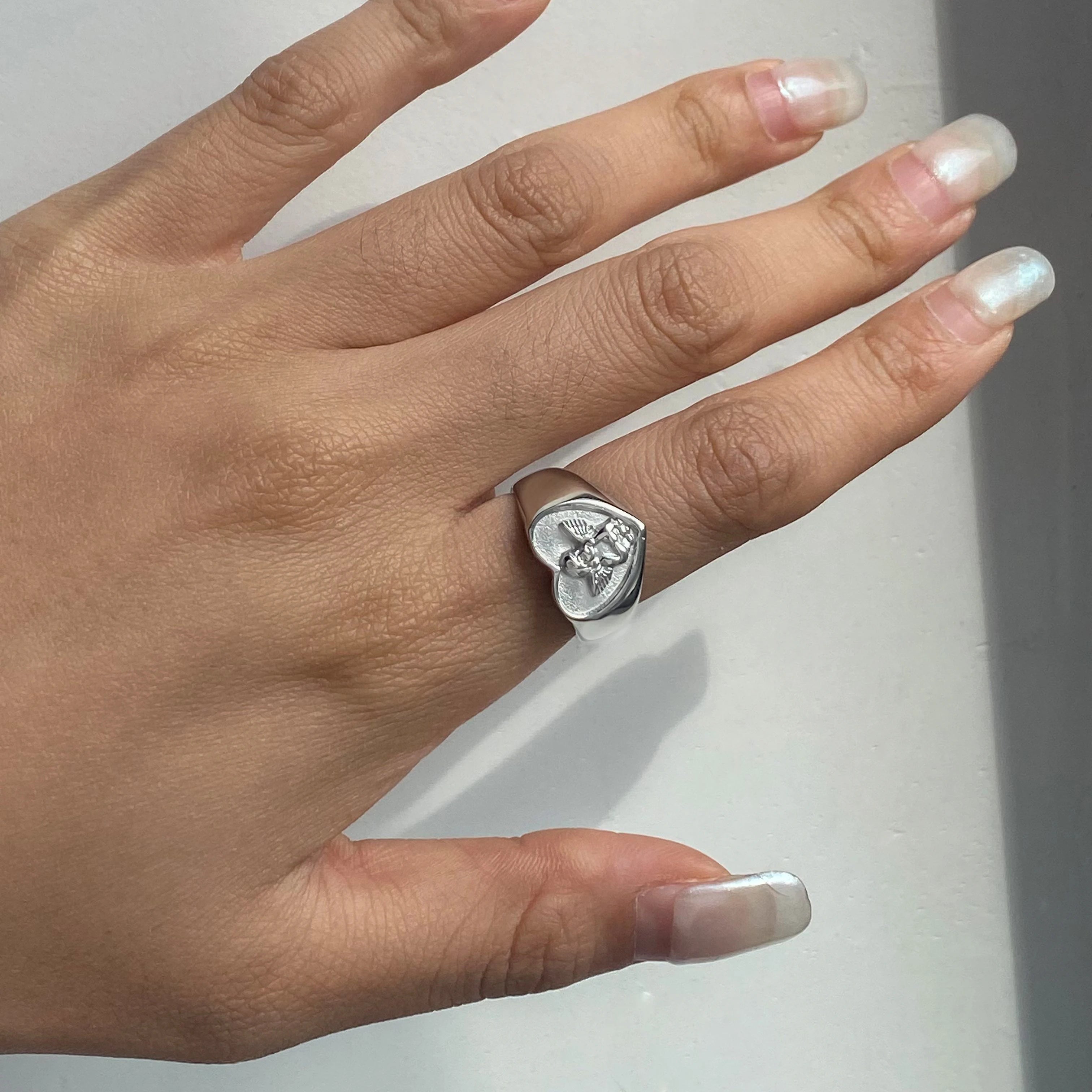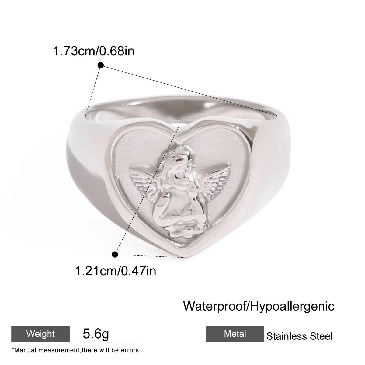 ステンレス304 低ニッケル 水に濡れても錆びにくい リング ハート 天使 エンジェル 【YJ01461】