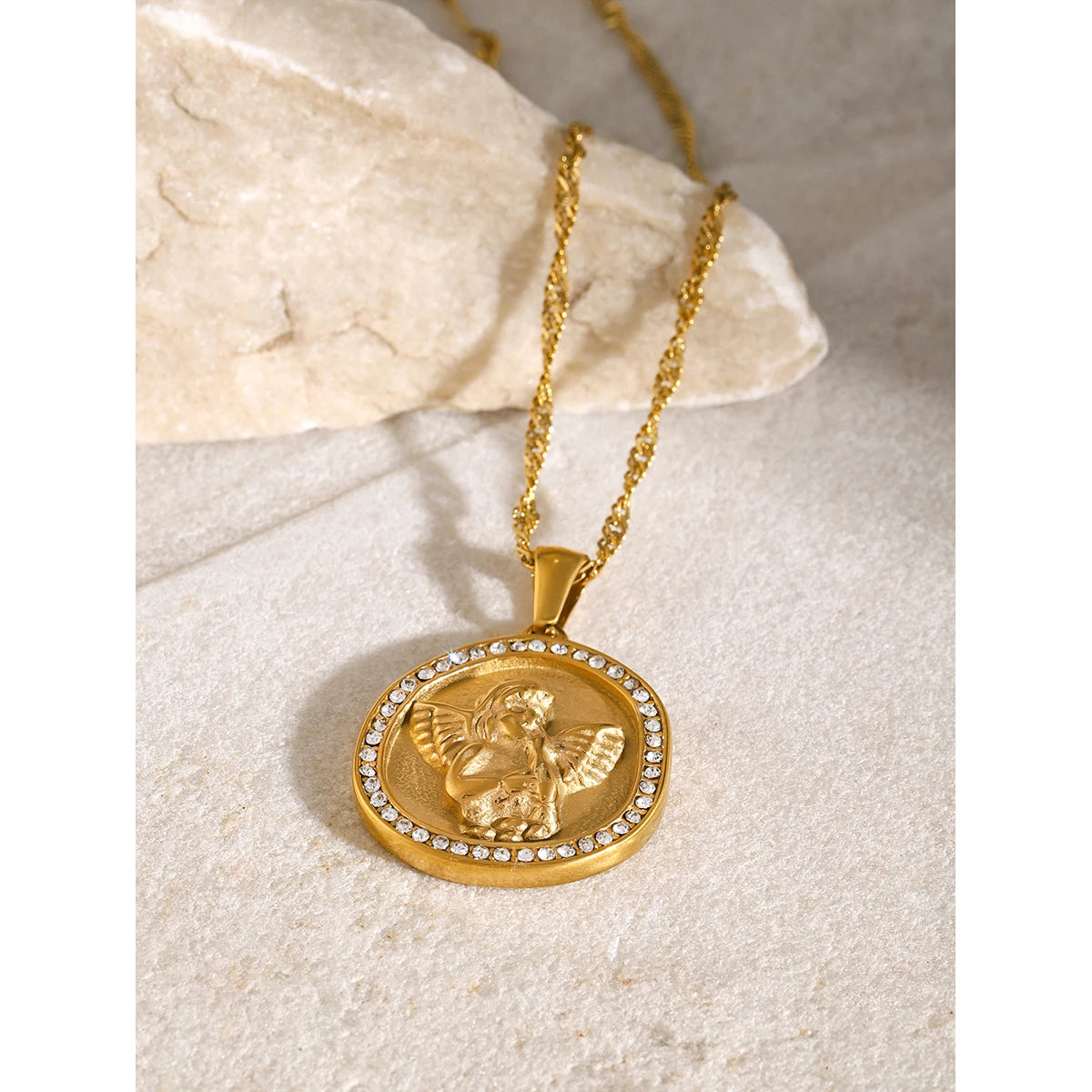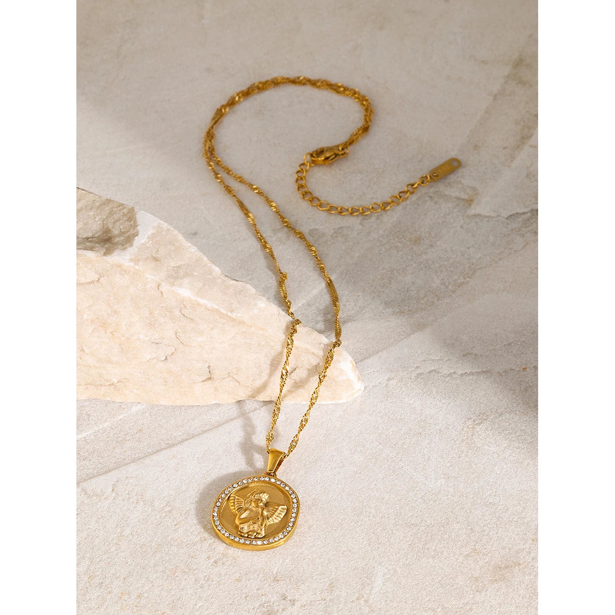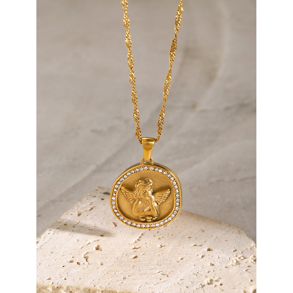 ステンレス304 低ニッケル 水に濡れても錆びにくい 18Kゴールドメッキ ネックレス 天使 エンジェル ジルコニア 【YJ02742】