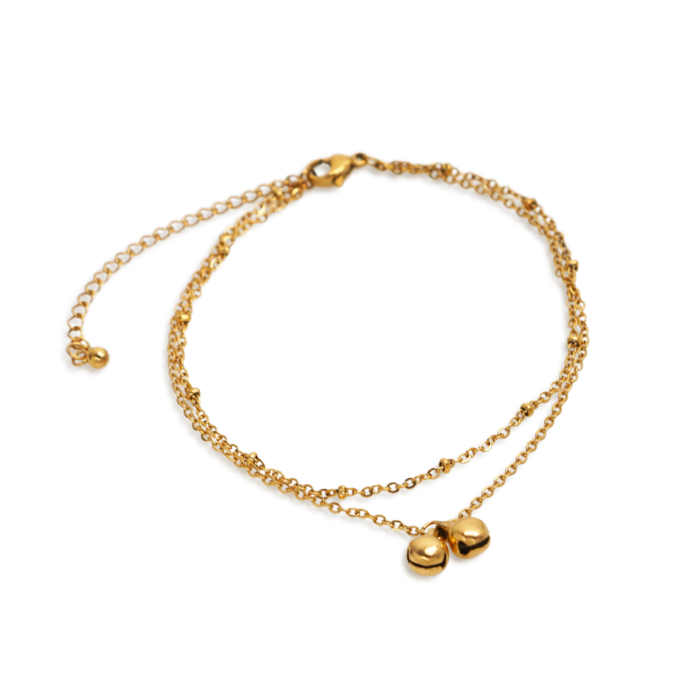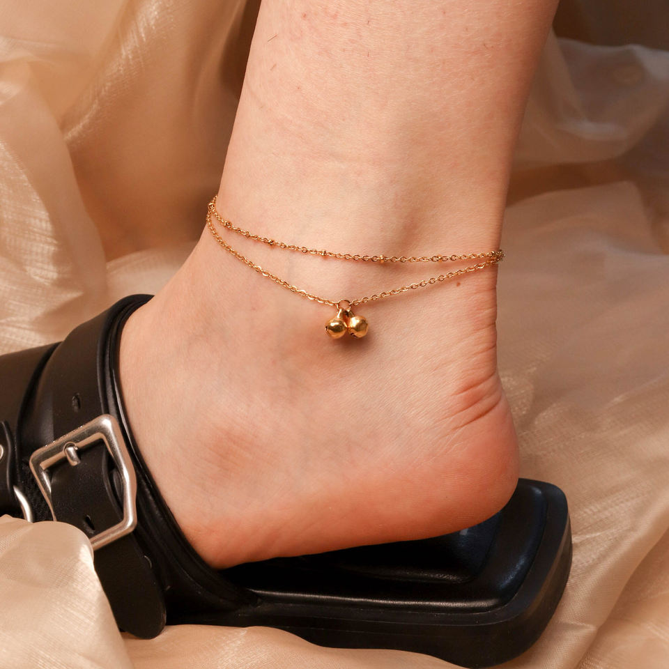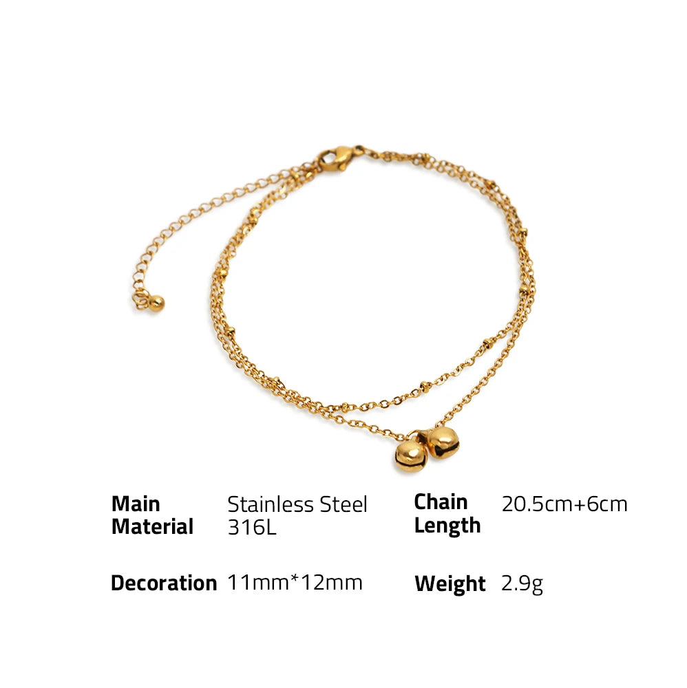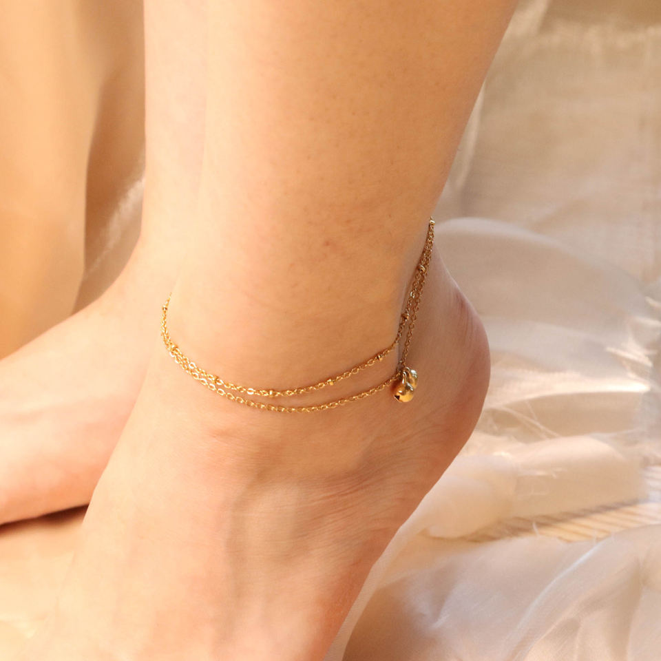 316Lサージカルステンレス 18Kゴールドメッキ アンクレット 2層 チェーン 【NY01511】