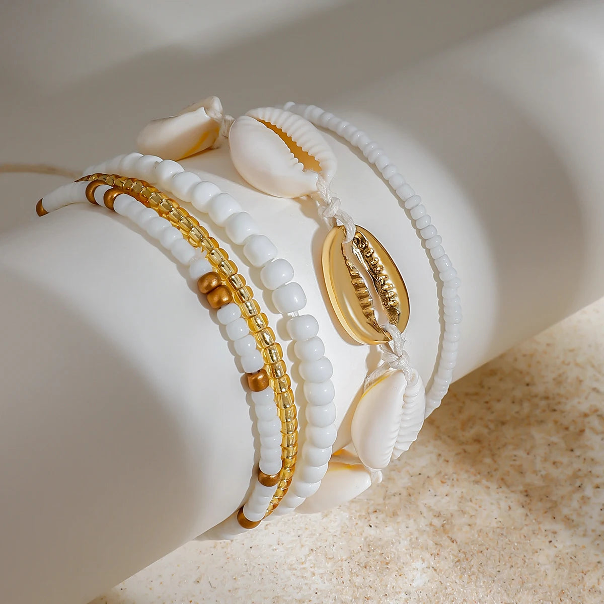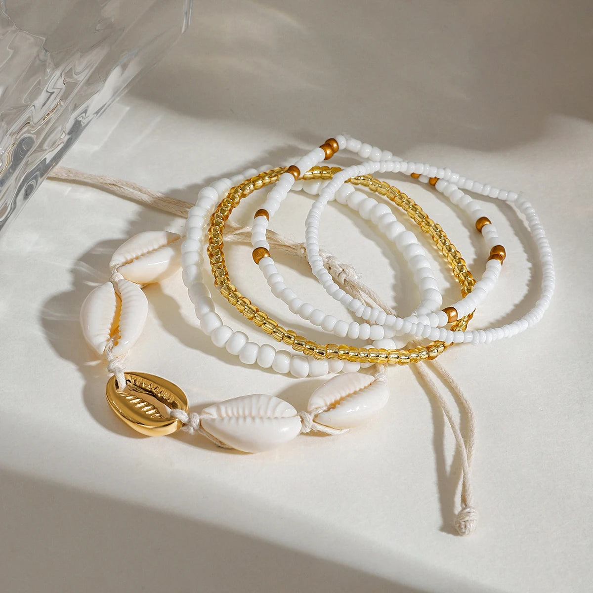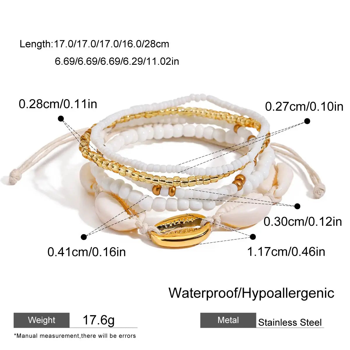 ステンレス304 低ニッケル 水に濡れても錆びにくい 18Kゴールドメッキ アンクレット チャーム シェル 貝殻 5点セット【YJ01493】