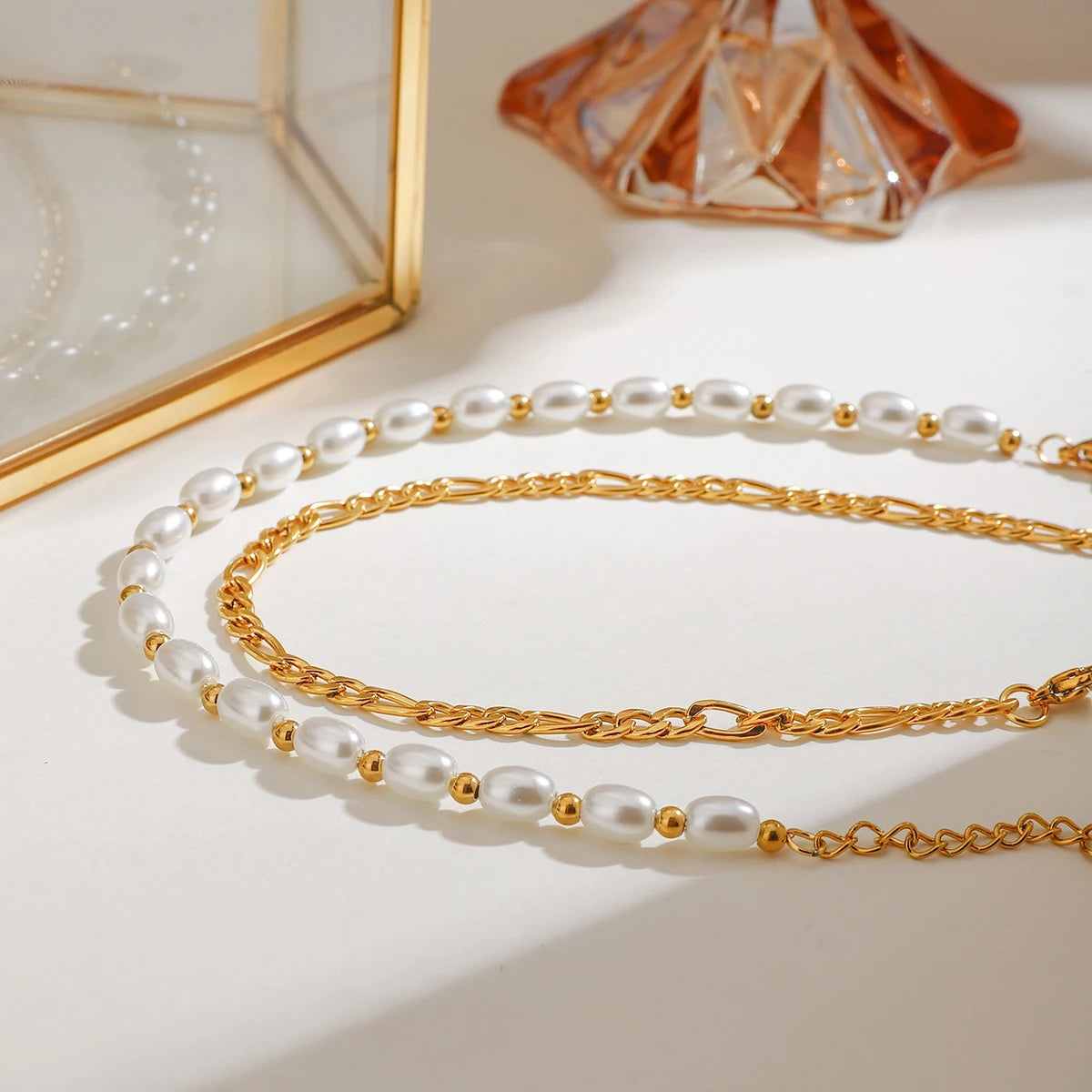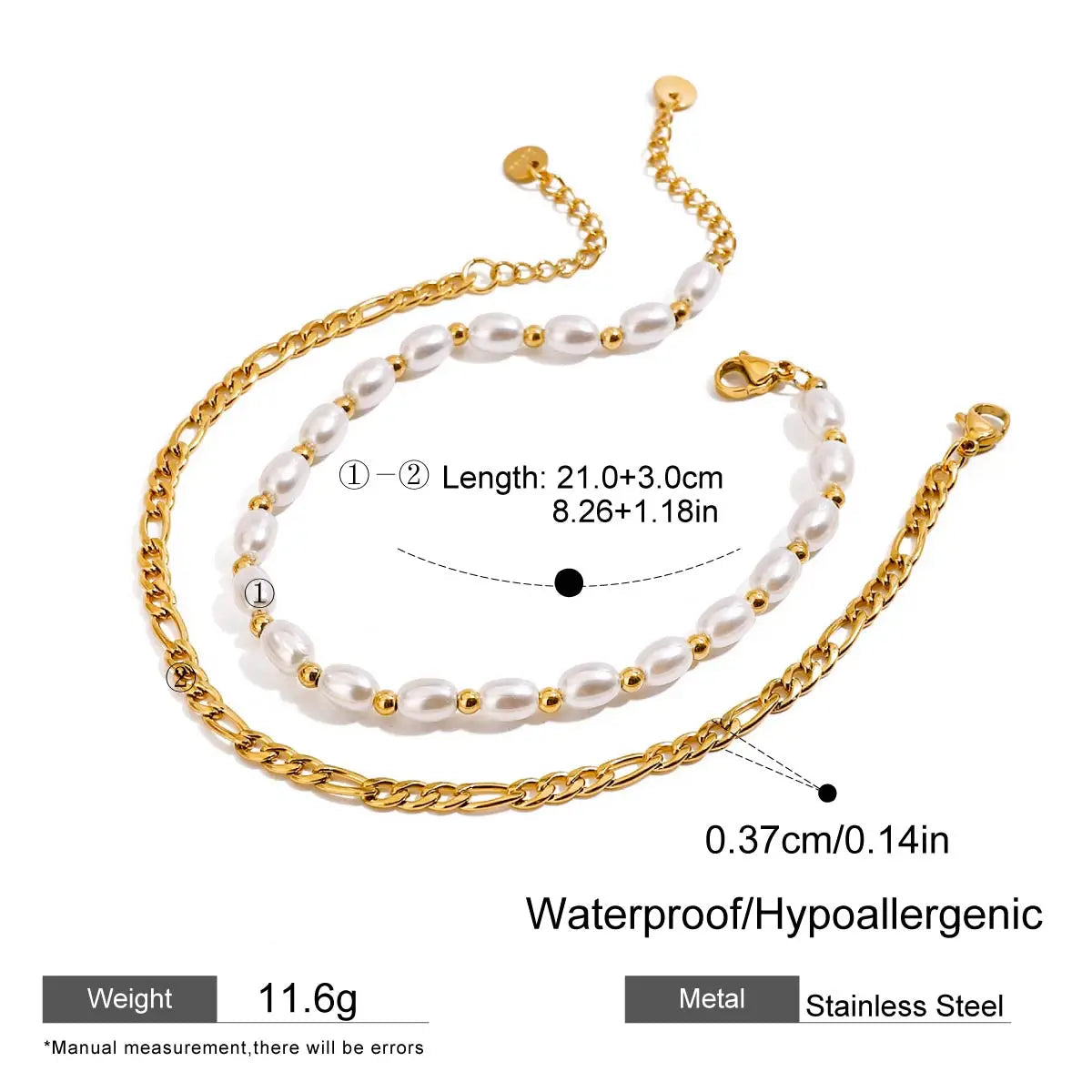 ステンレス304 低ニッケル 水に濡れても錆びにくい 18Kゴールドメッキ アンクレット 2点セット パール 【YJ01504】