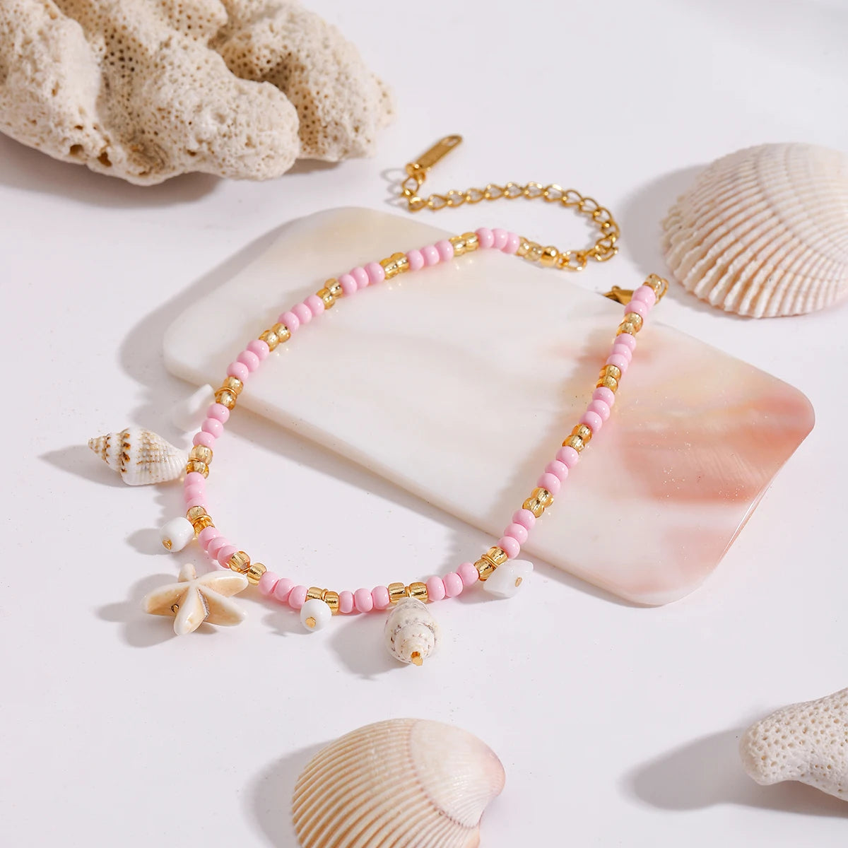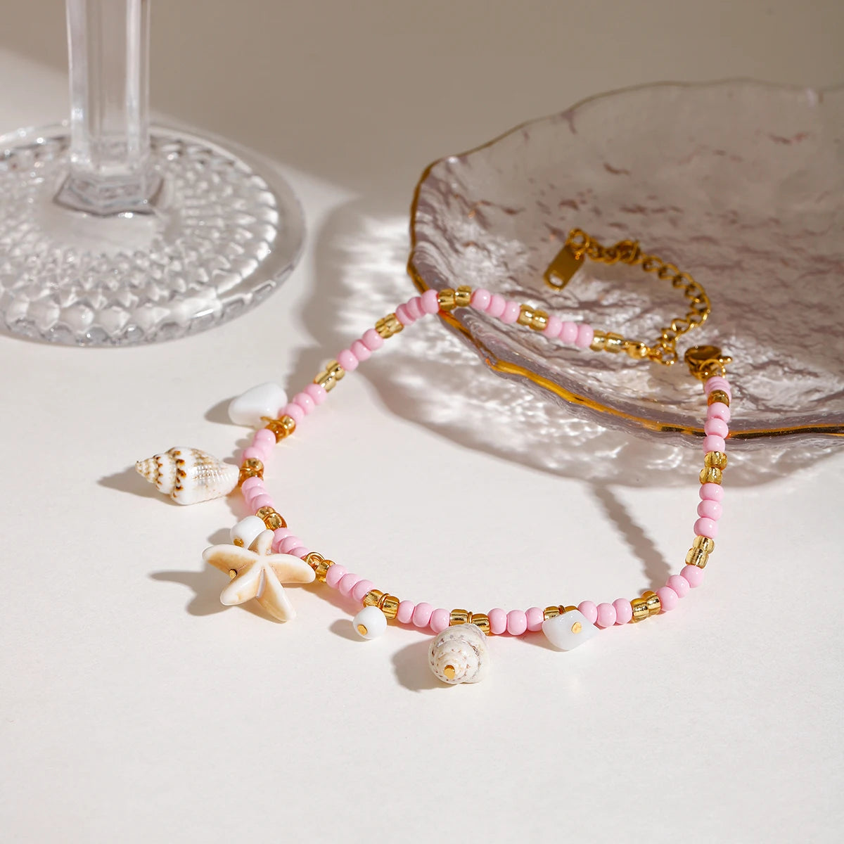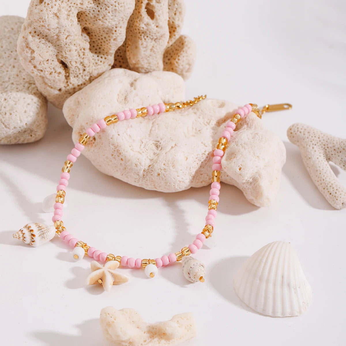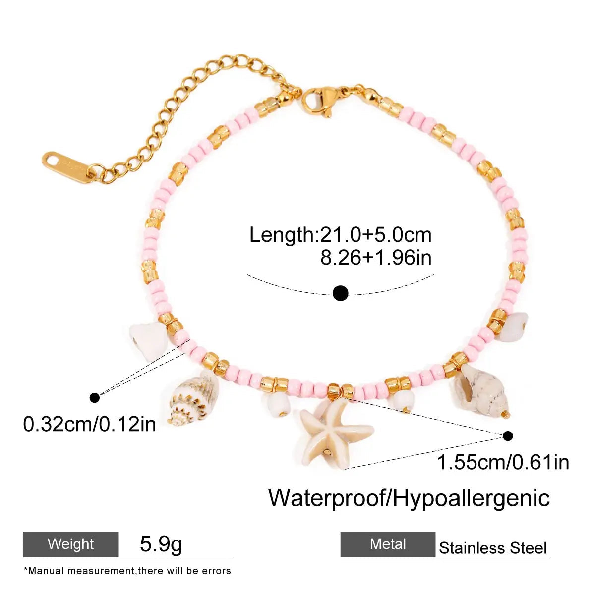 ステンレス304 低ニッケル 水に濡れても錆びにくい 18Kゴールドメッキ アンクレット チャーム シェル 貝殻 【YJ01506】