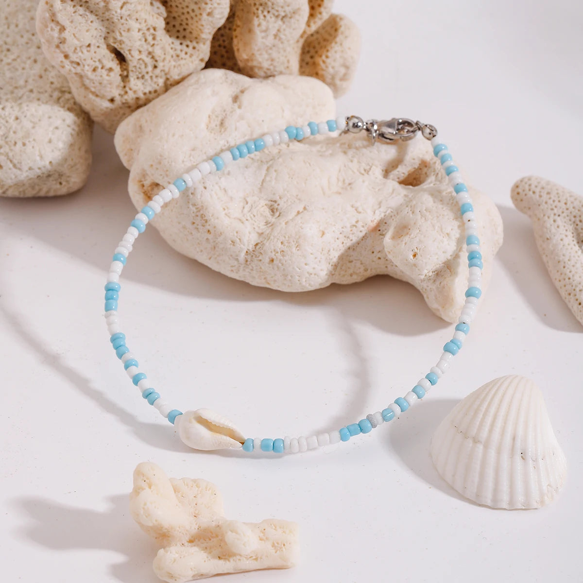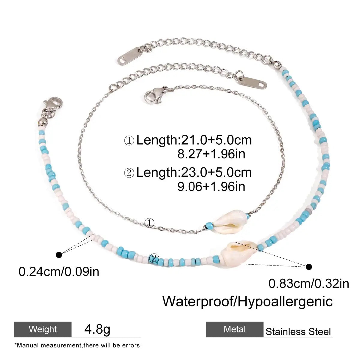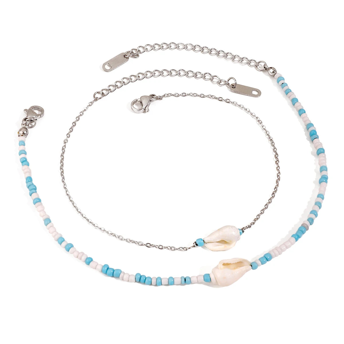 ステンレス304 低ニッケル 水に濡れても錆びにくい 18Kゴールドメッキ アンクレット 2点セット シェル 貝殻【YJ01507】