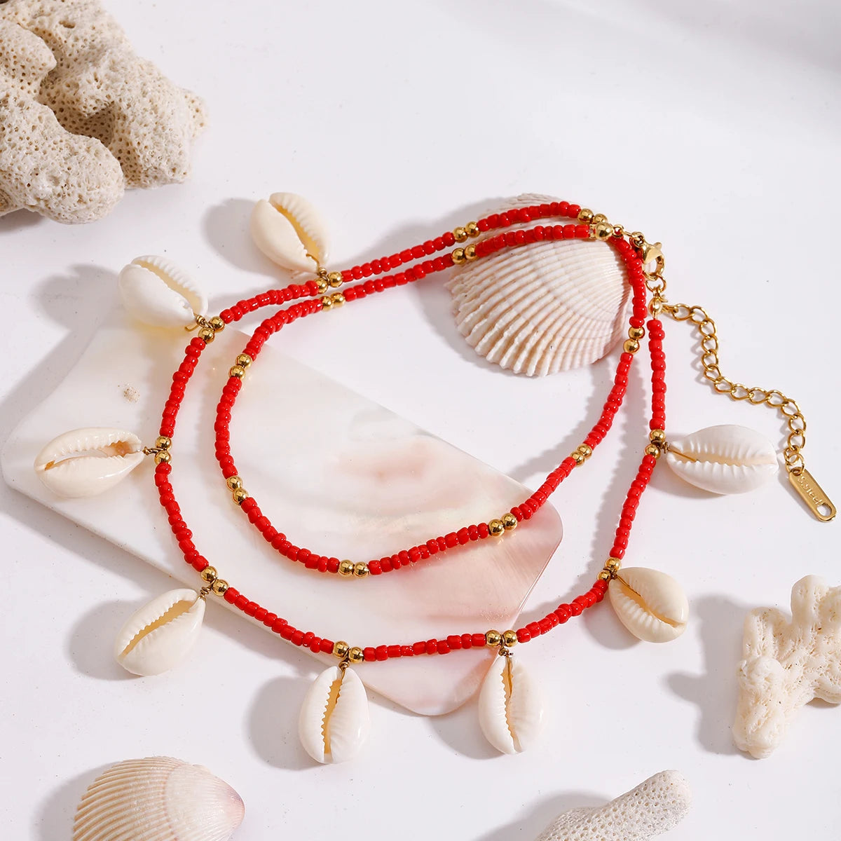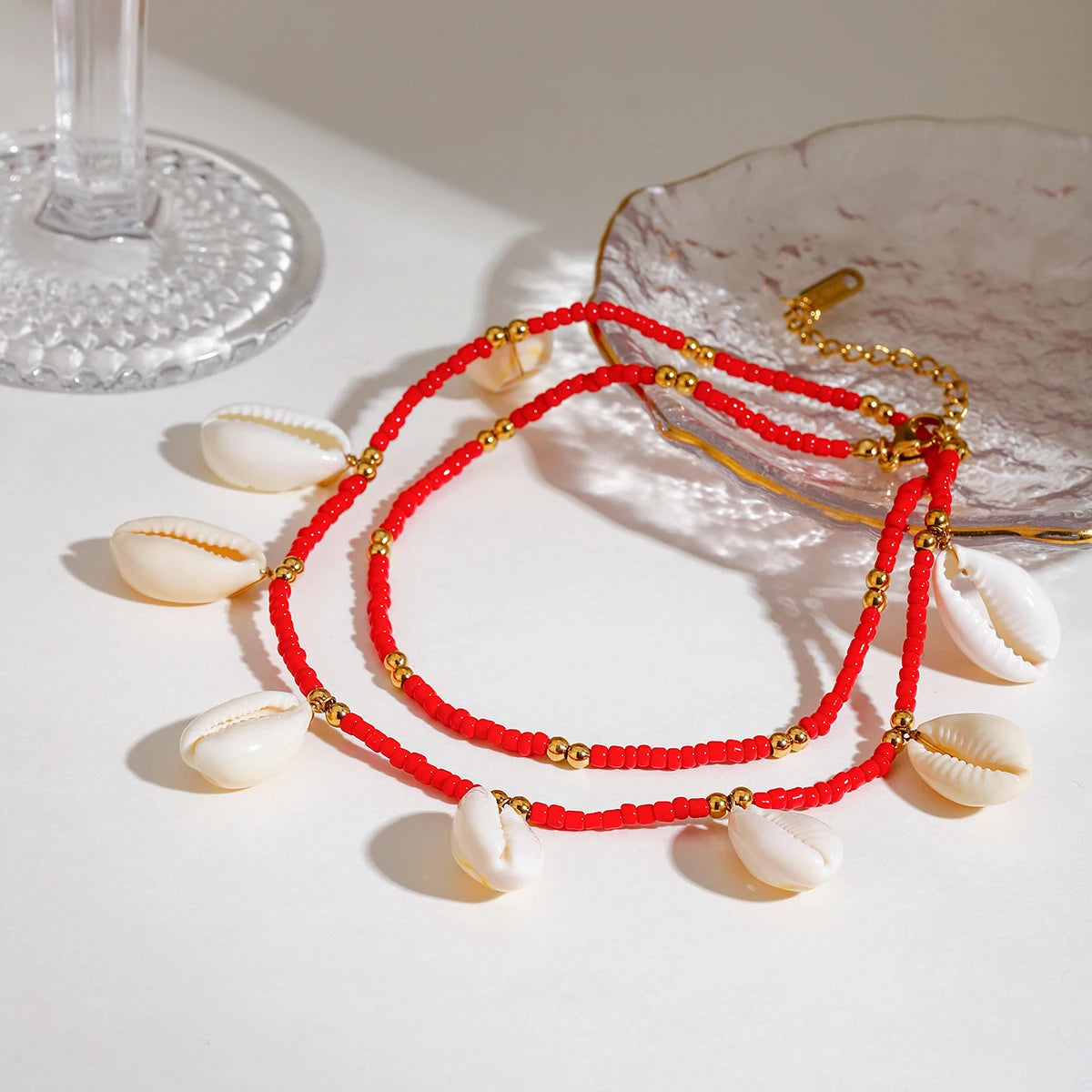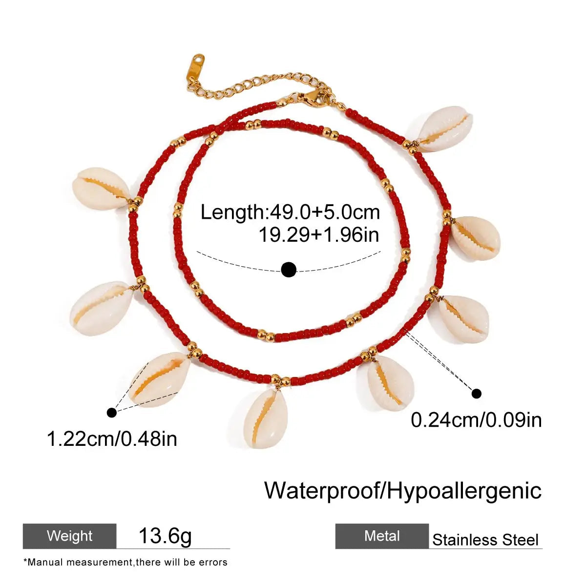 ステンレス304 低ニッケル 水に濡れても錆びにくい 18Kゴールドメッキ アンクレット 2層 チャーム シェル 貝殻 【YJ01508】