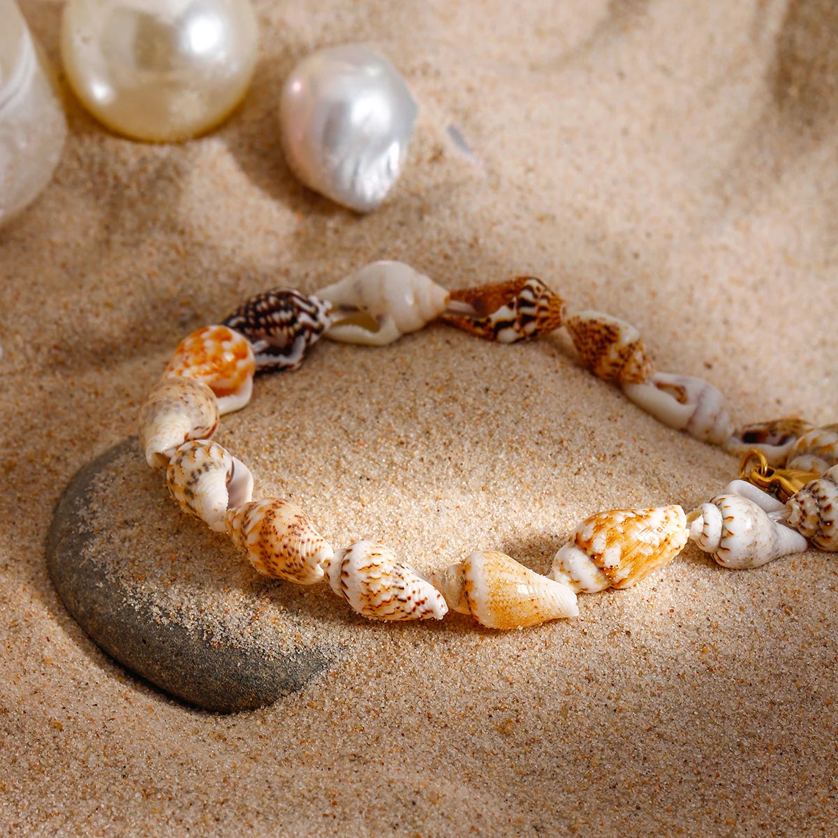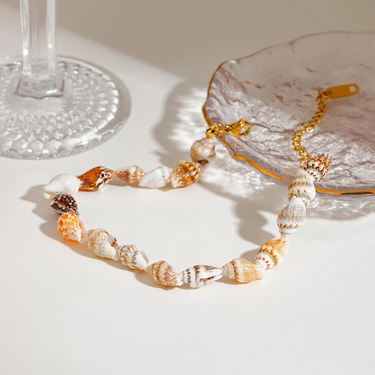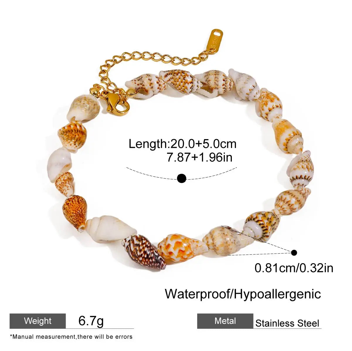 ステンレス304 低ニッケル 水に濡れても錆びにくい 18Kゴールドメッキ アンクレット シェル 貝殻 【YJ01511】