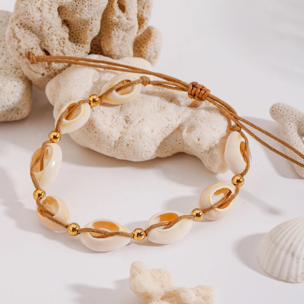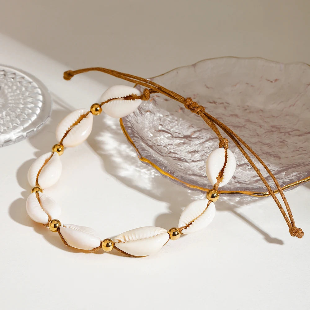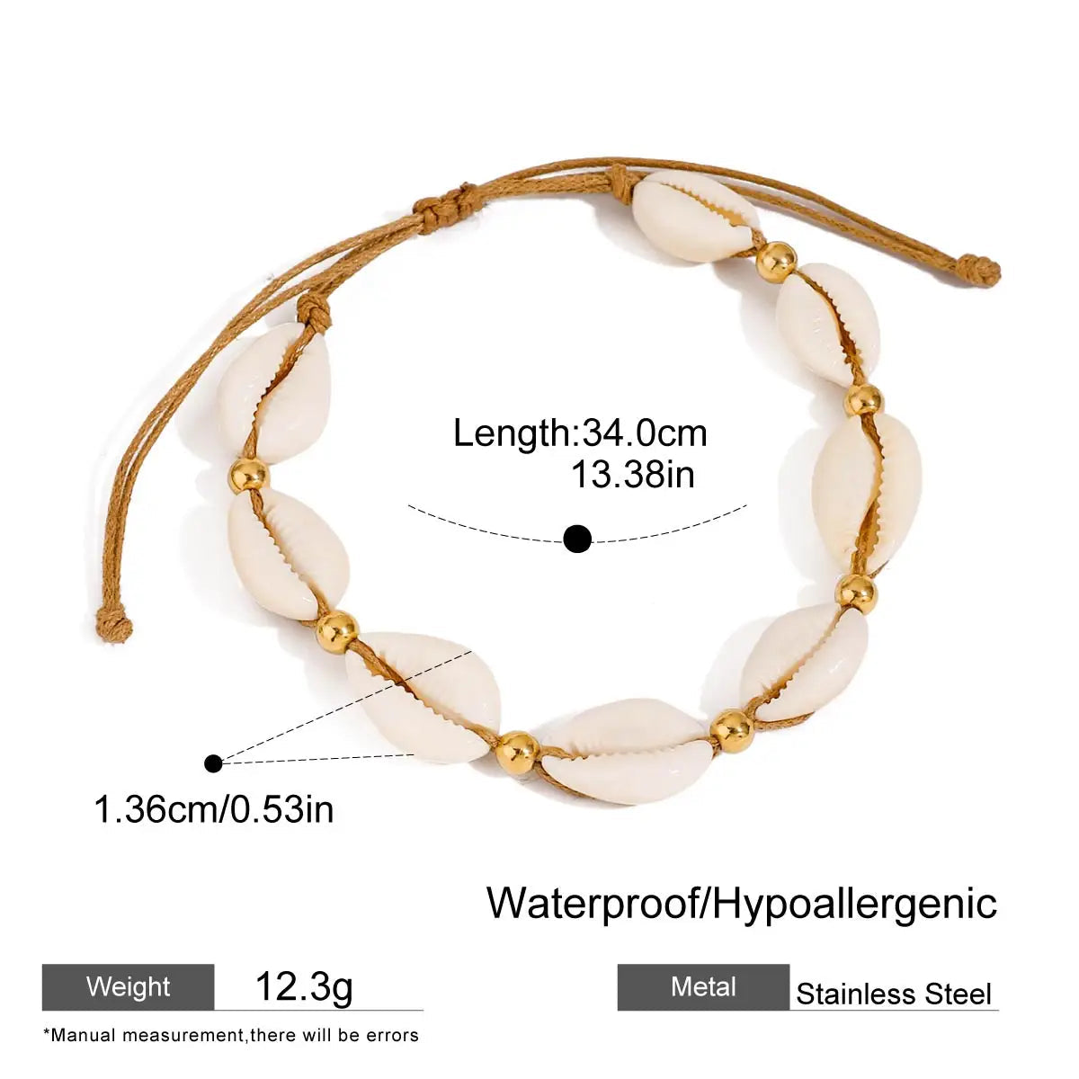 ステンレス304 低ニッケル 水に濡れても錆びにくい 18Kゴールドメッキ アンクレット シェル 貝殻 【YJ01512】