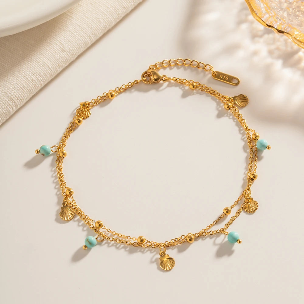 ステンレス304 低ニッケル 水に濡れても錆びにくい 18Kゴールドメッキ アンクレット チャーム【YJ01782】