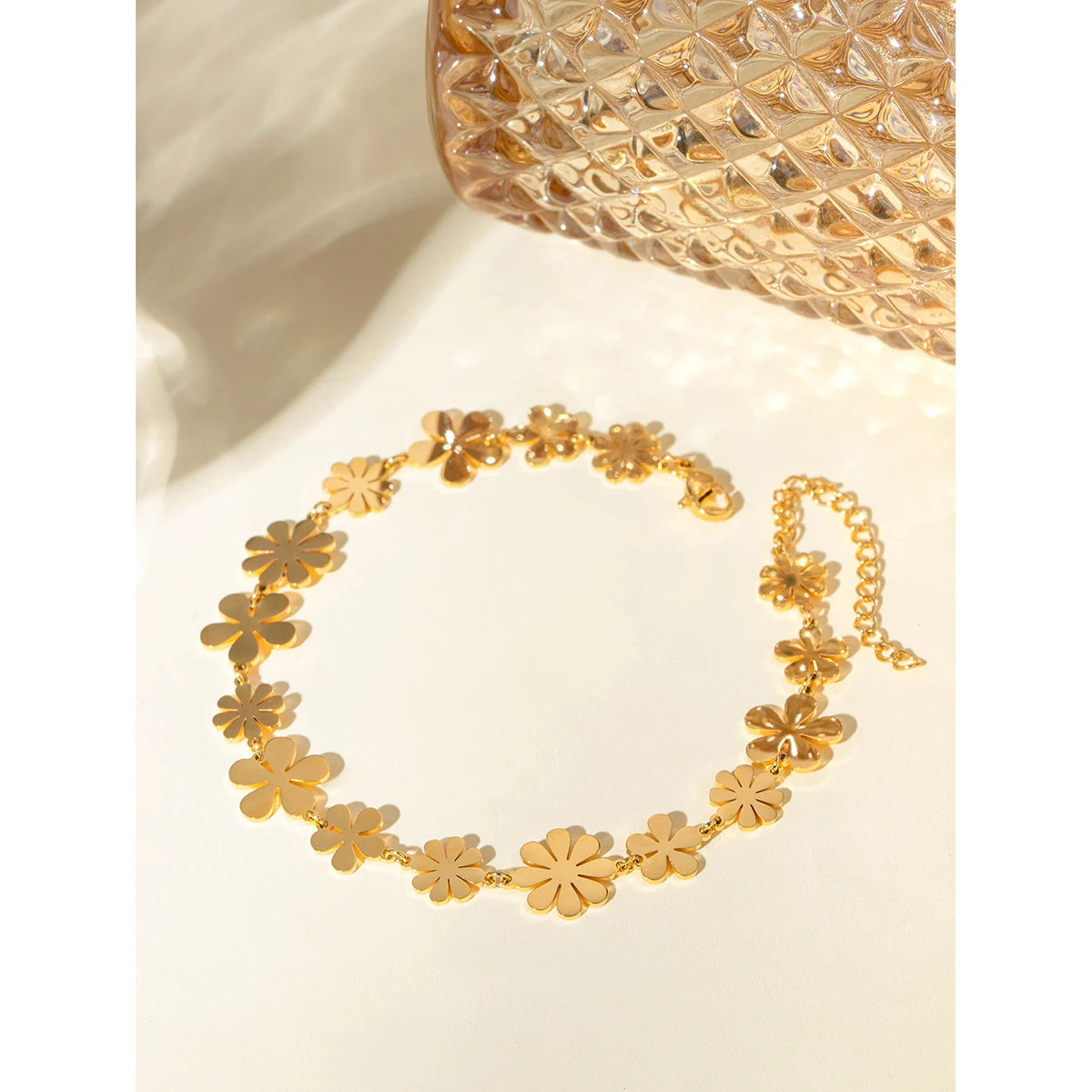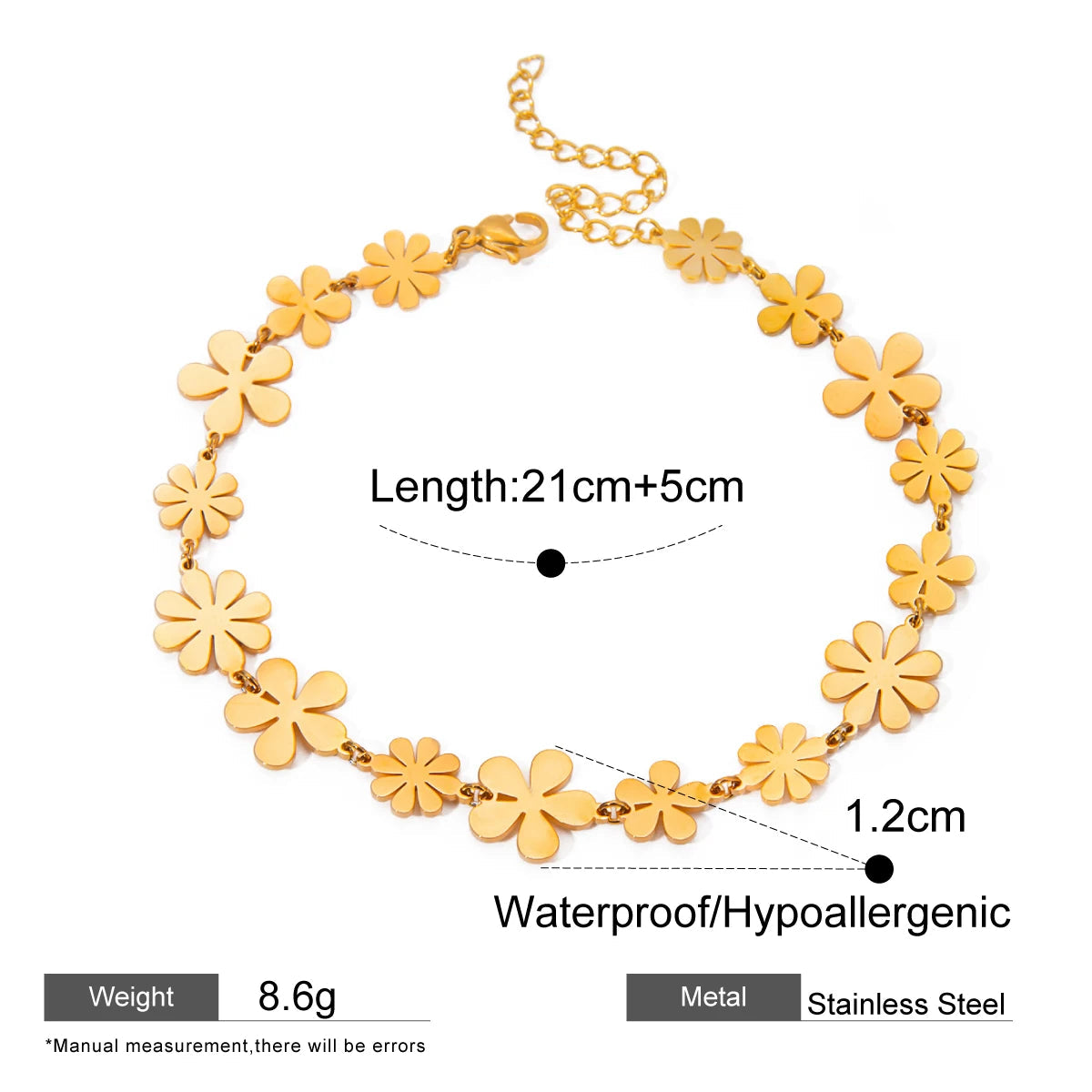 ステンレス304 低ニッケル 水に濡れても錆びにくい 18Kゴールドメッキ アンクレット チェーン フラワー 花 【YJ02137】