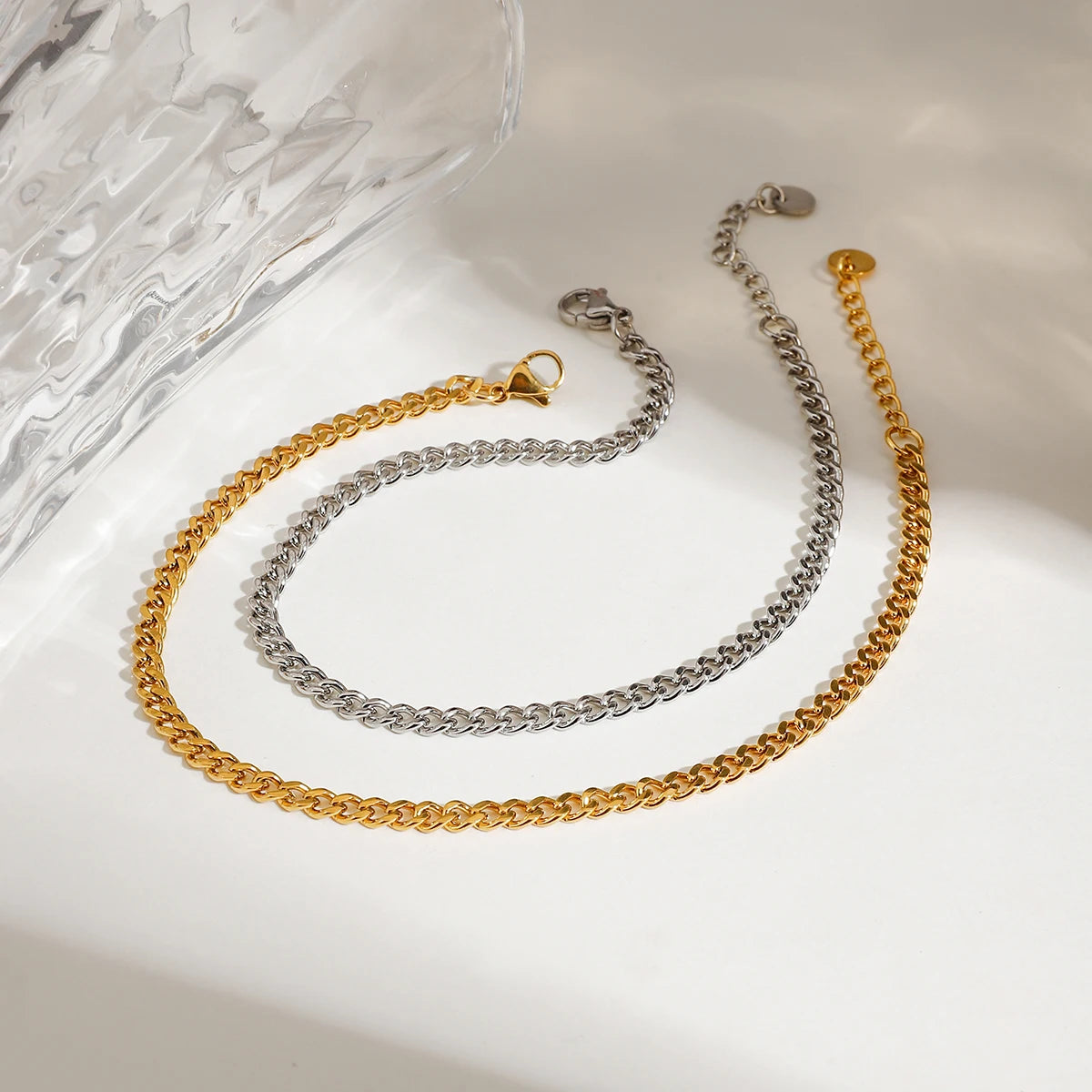 ステンレス304 低ニッケル 水に濡れても錆びにくい 18Kゴールドメッキ アンクレット 2点セット 【YJ02486】