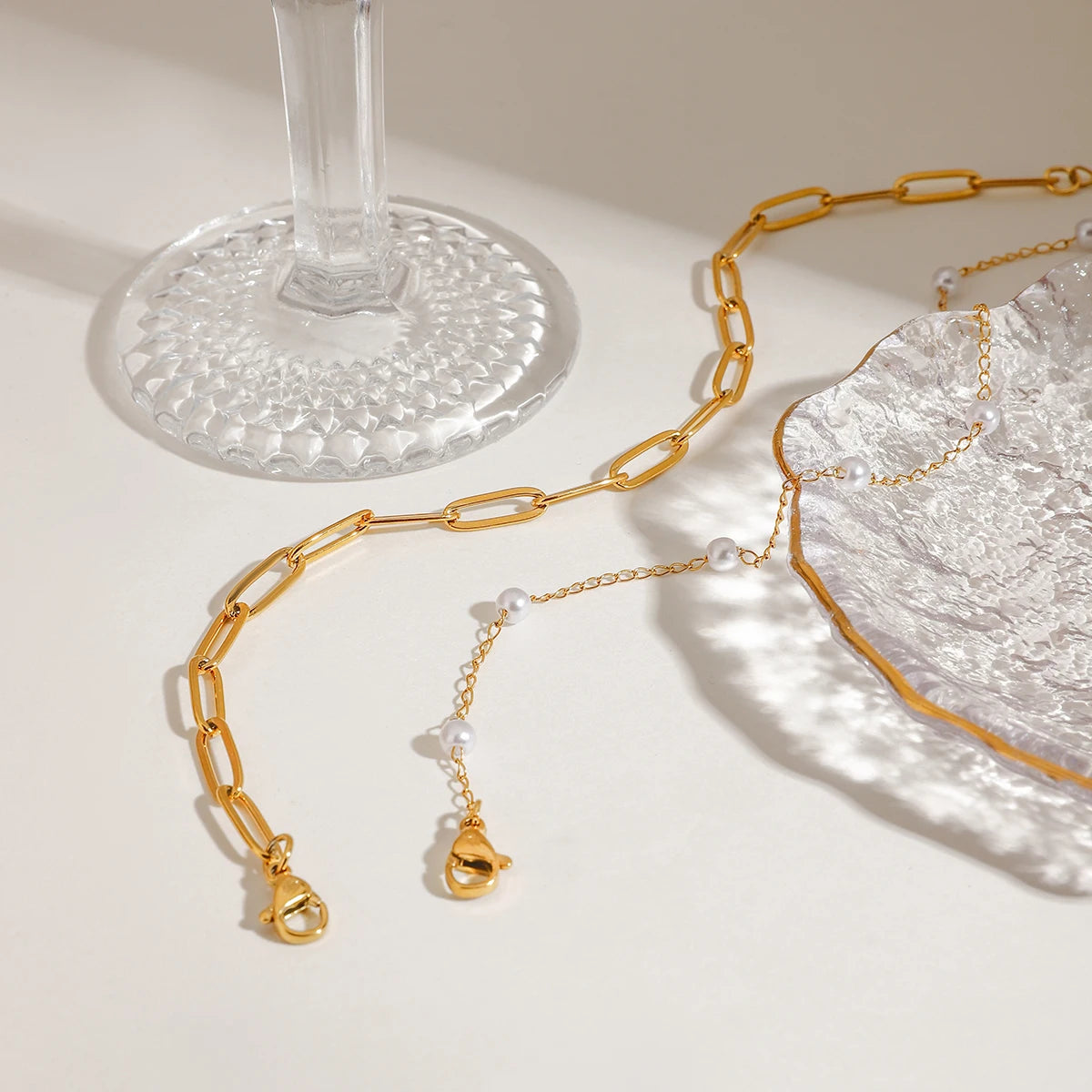 ステンレス304 低ニッケル 水に濡れても錆びにくい 18Kゴールドメッキ アンクレット チェーン 2点セット 【YJ02487】