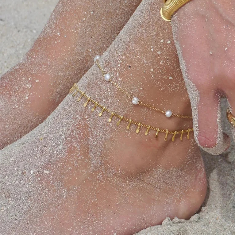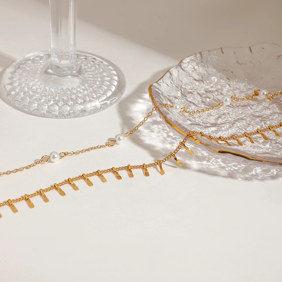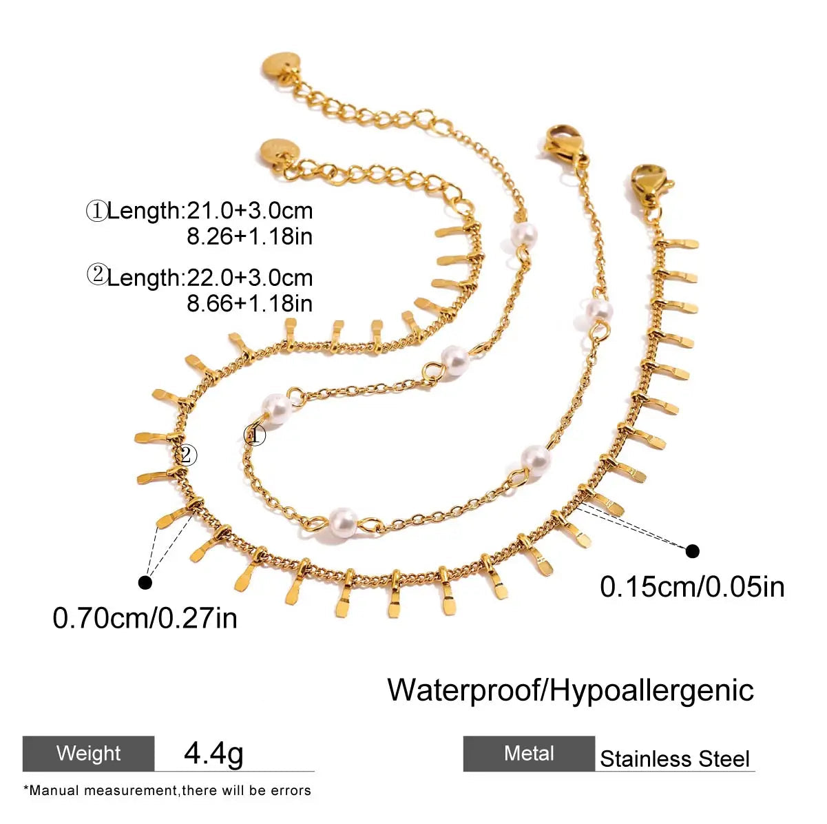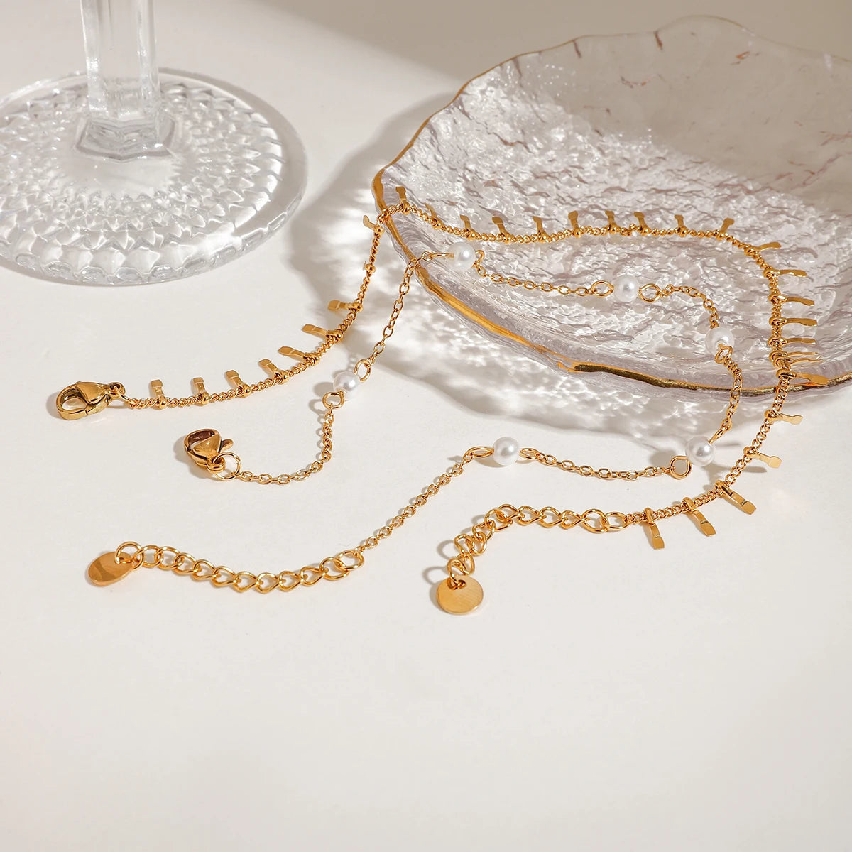 ステンレス304 低ニッケル 水に濡れても錆びにくい 18Kゴールドメッキ アンクレット チェーン パール 【YJ02488】