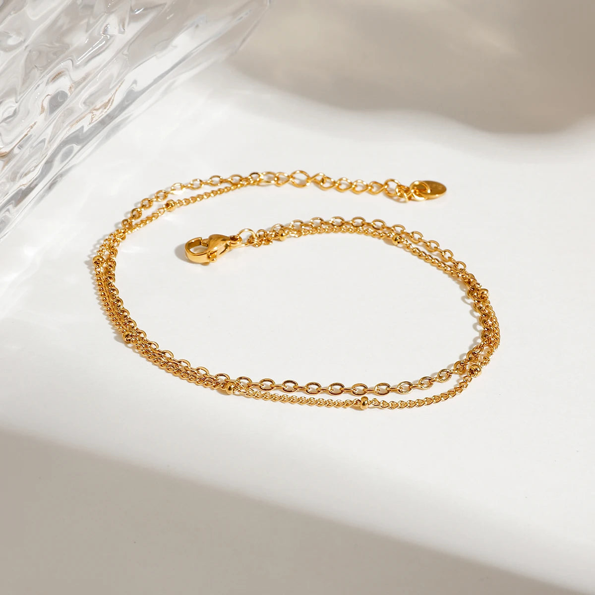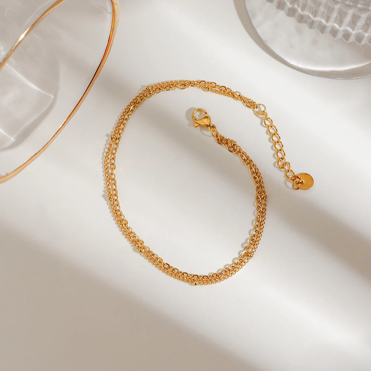 ステンレス304 低ニッケル 水に濡れても錆びにくい 18Kゴールドメッキ アンクレット チェーン 【YJ02490】