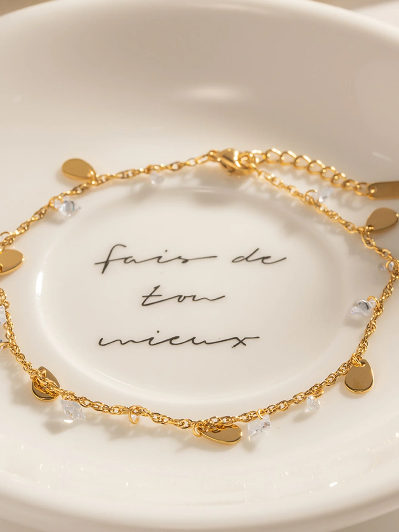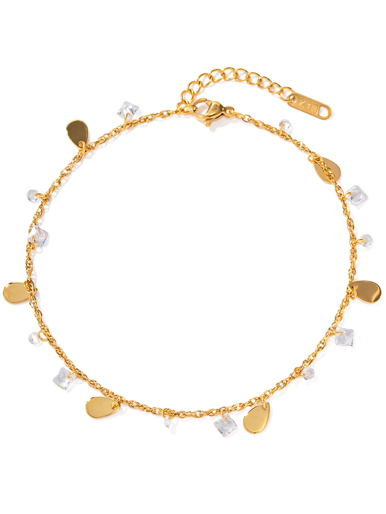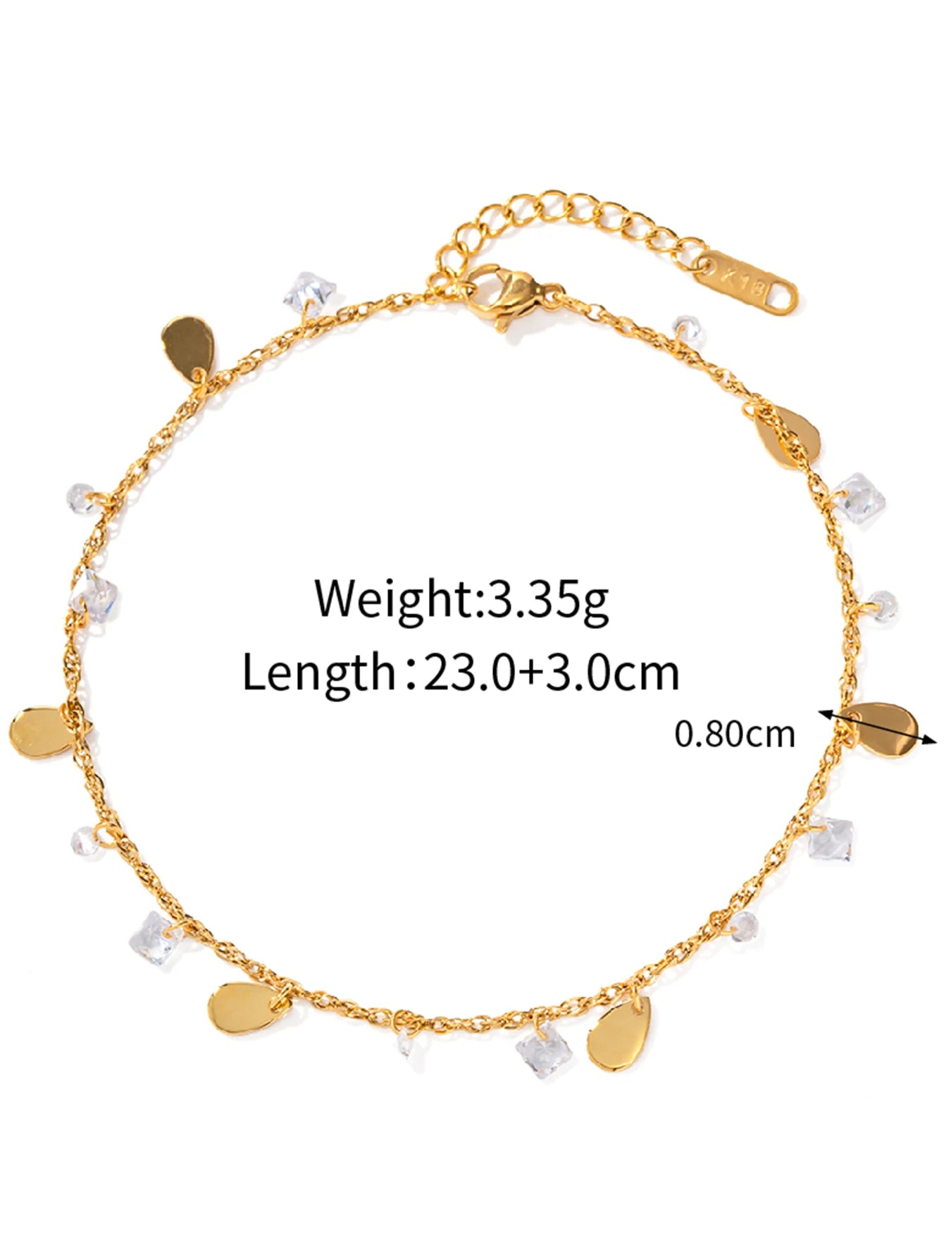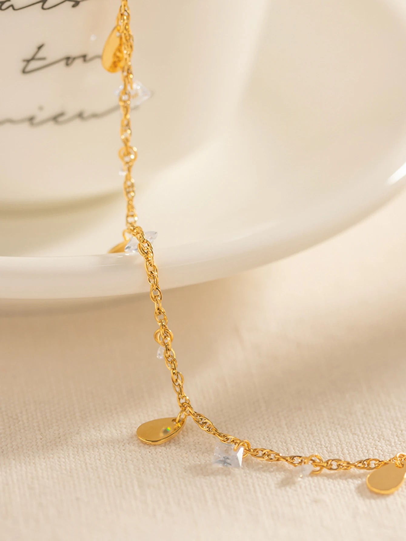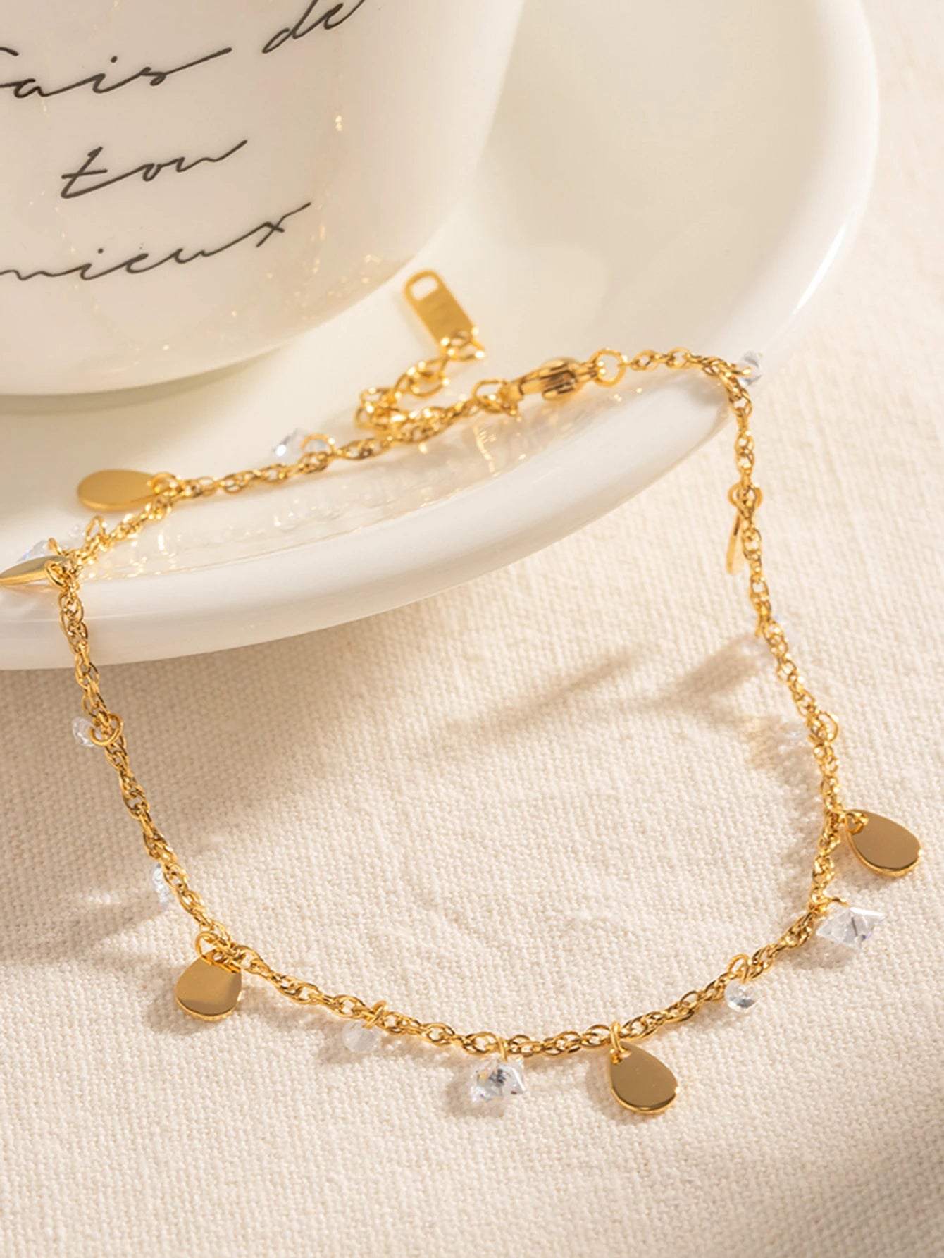 ステンレス304 低ニッケル 水に濡れても錆びにくい 18Kゴールドメッキ アンクレッ クリスタル 【YJ03896】