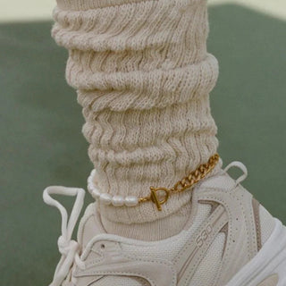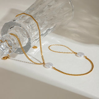 ステンレス304 低ニッケル 水に濡れても錆びにくい 18Kゴールドメッキ アンクレット キューバンチェーン パール 【YJ01468】