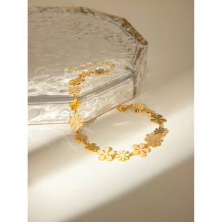 ステンレス304 低ニッケル 水に濡れても錆びにくい 18Kゴールドメッキ アンクレット チェーン フラワー 花 【YJ02137】