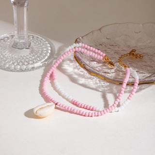 ステンレス304 低ニッケル 水に濡れても錆びにくい 18Kゴールドメッキ アンクレット 2層 チャーム シェル 貝殻 【YJ01510】