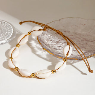 ステンレス304 低ニッケル 水に濡れても錆びにくい 18Kゴールドメッキ アンクレット シェル 貝殻 【YJ01511】