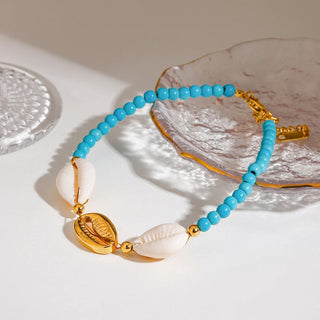 ステンレス304 低ニッケル 水に濡れても錆びにくい 18Kゴールドメッキ アンクレット シェル 貝殻 ターコイズ 【YJ01509】