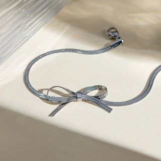 ステンレス304 低ニッケル 水に濡れても錆びにくい 18Kゴールドメッキ アンクレット スネークチェーン リボン 【YJ02157】