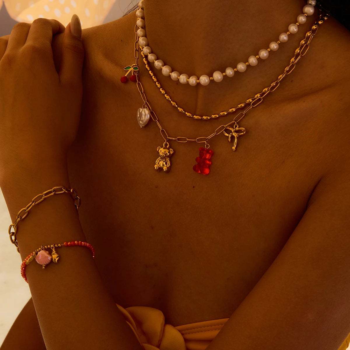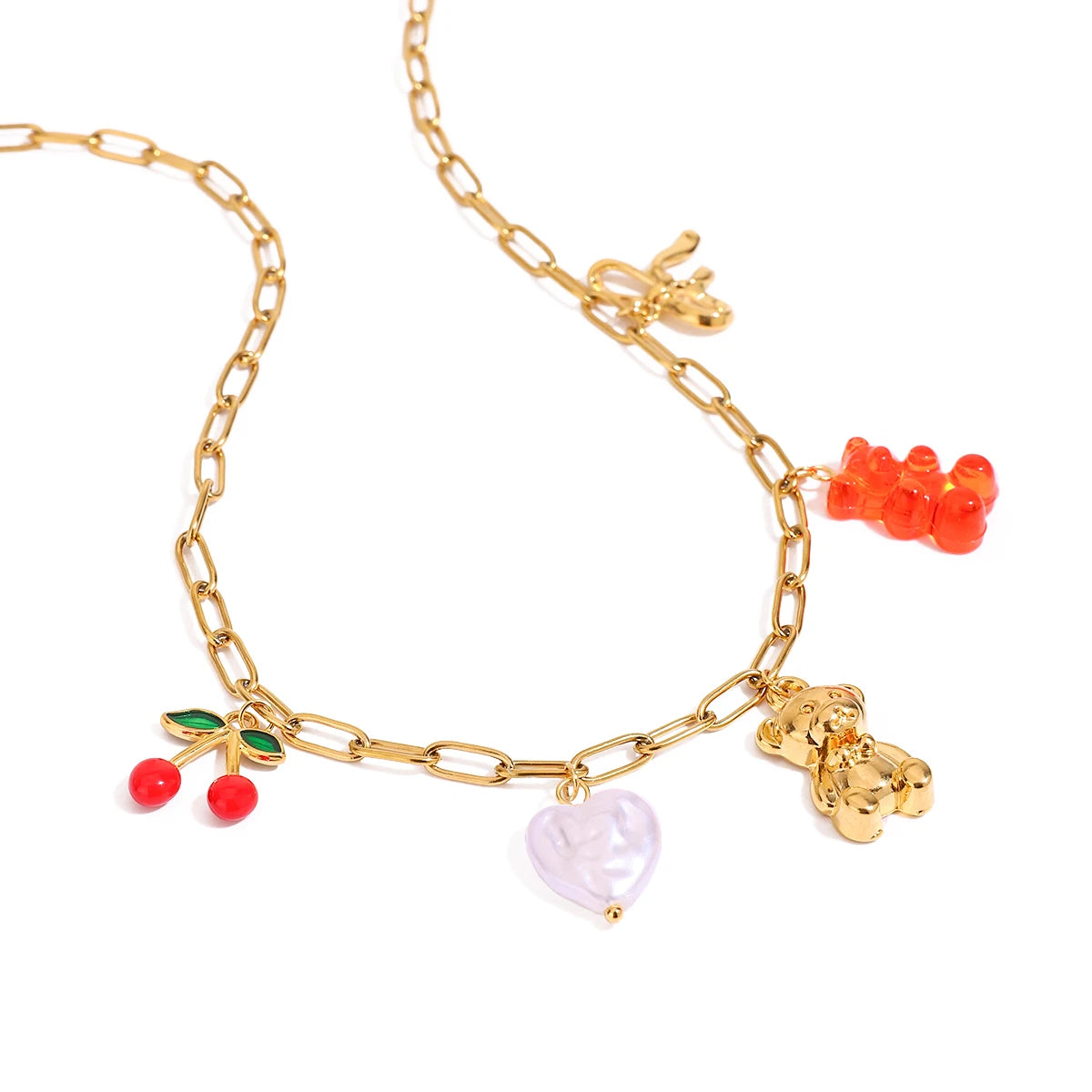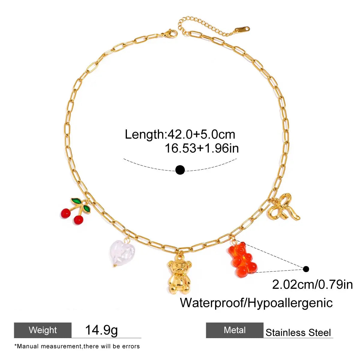 ステンレス304 ニッケルフリー 水に濡れても錆びにくい 18Kゴールドメッキ チャーム ネックレス ハート くま【YJ00798】