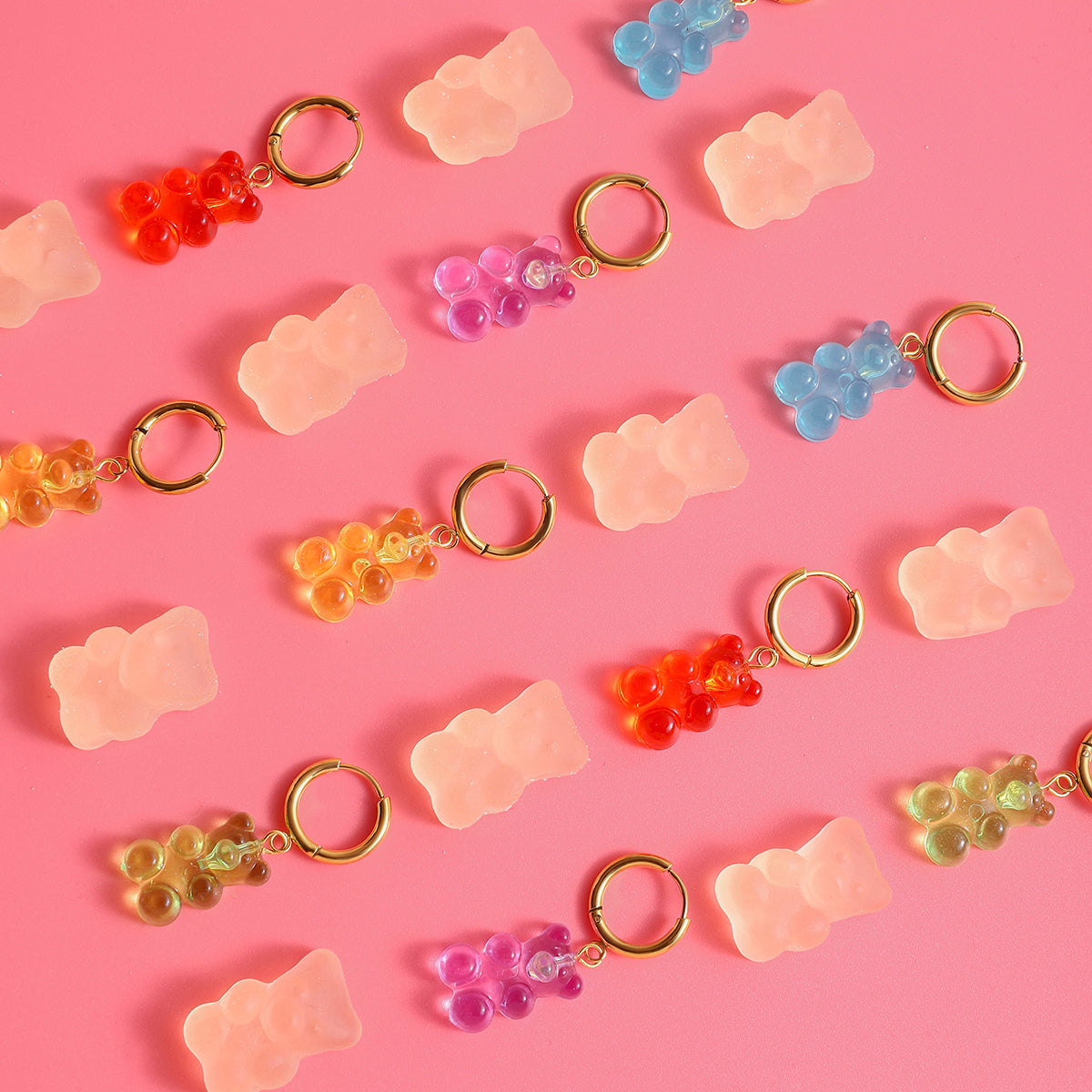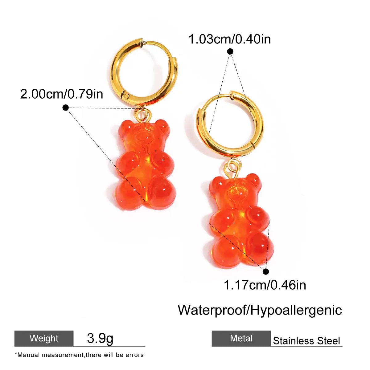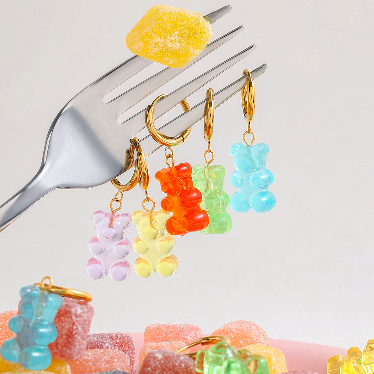 ステンレス304 ニッケルフリー 水に濡れても錆びにくい 18Kゴールドメッキ ピアス くま キャンディ 【YJ00801】