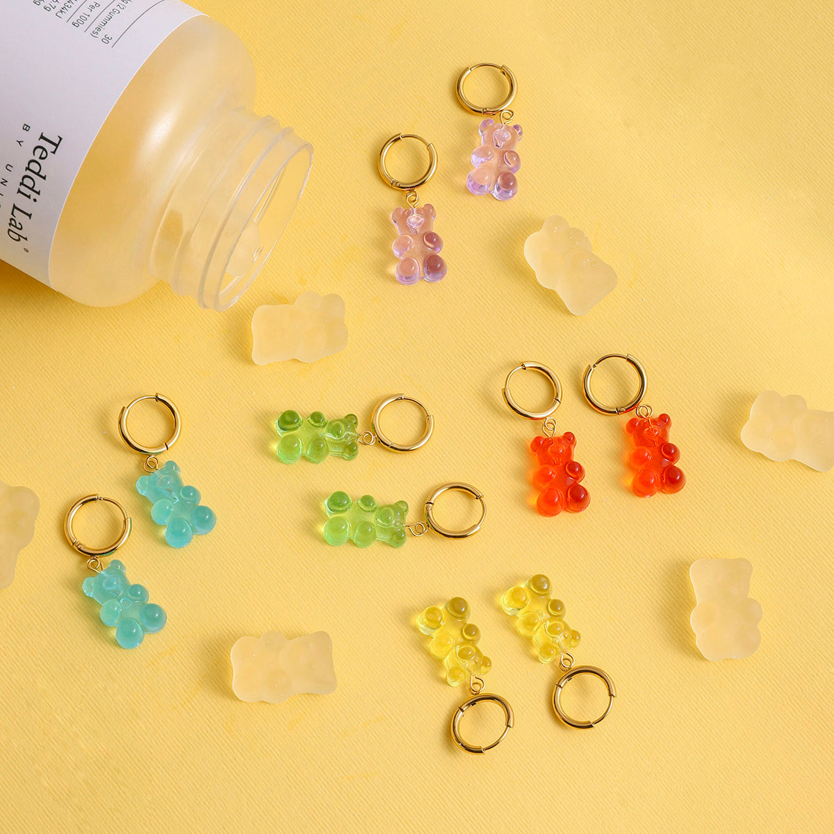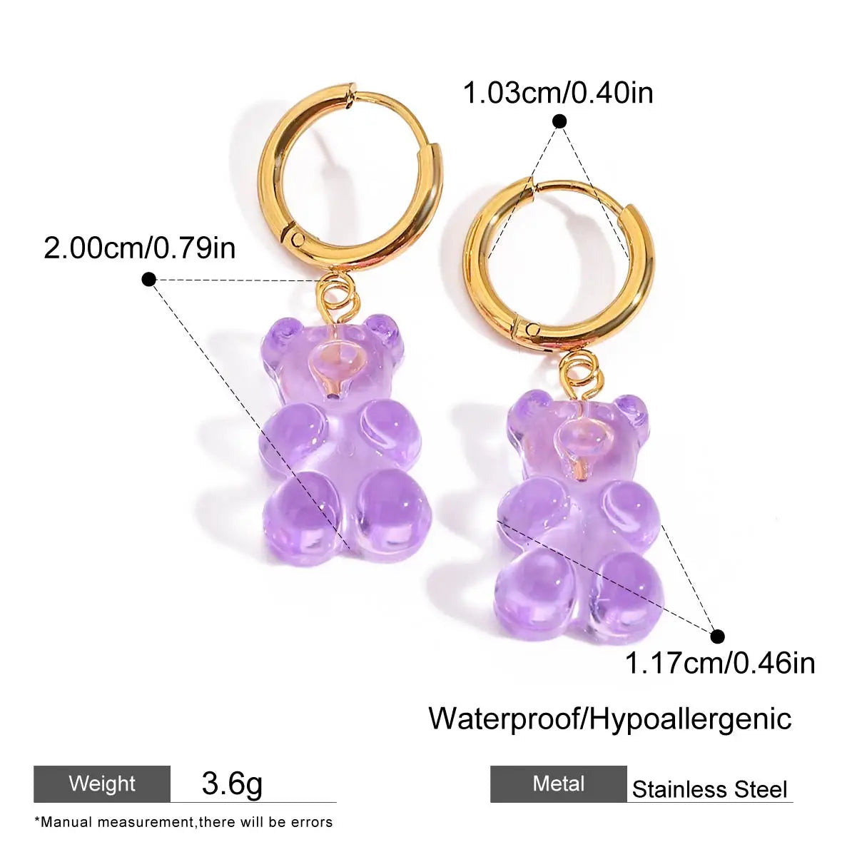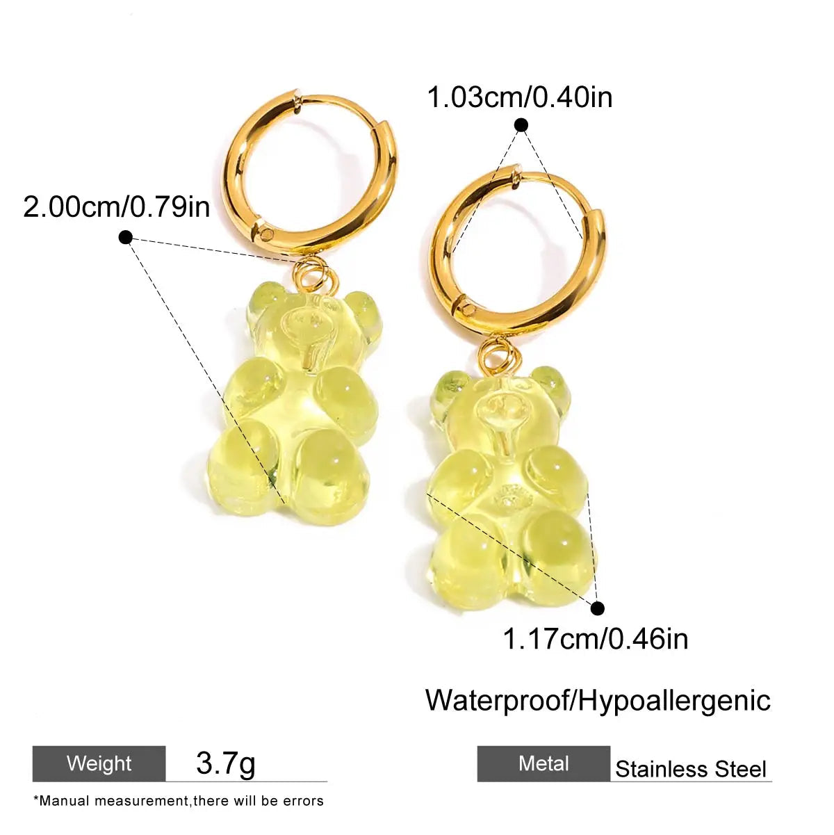 ステンレス304 ニッケルフリー 水に濡れても錆びにくい 18Kゴールドメッキ ピアス くま キャンディ 【YJ00801】