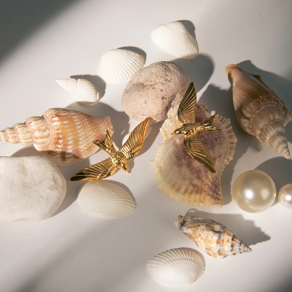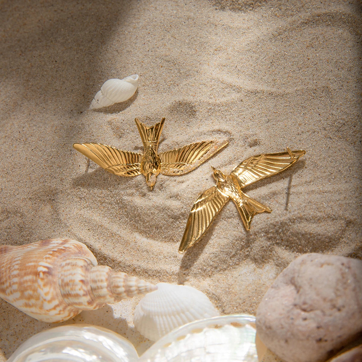 ステンレス304 低ニッケル 水に濡れても錆びにくい 18Kゴールドメッキ ピアス 鳥 バード【YJ03370】