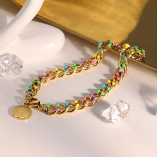 316Lサージカルステンレス ブレスレット キューバンチェーン エナメル【NY00816】
