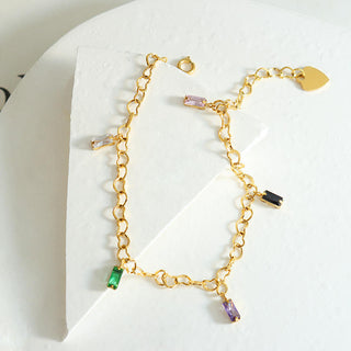 316Lサージカルステンレス ブレスレット チャーム チェーン ジルコニア【NY00875】