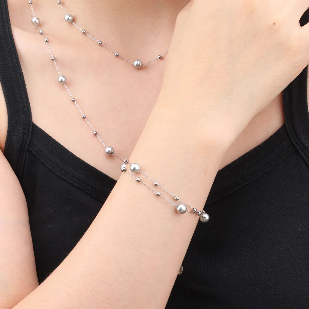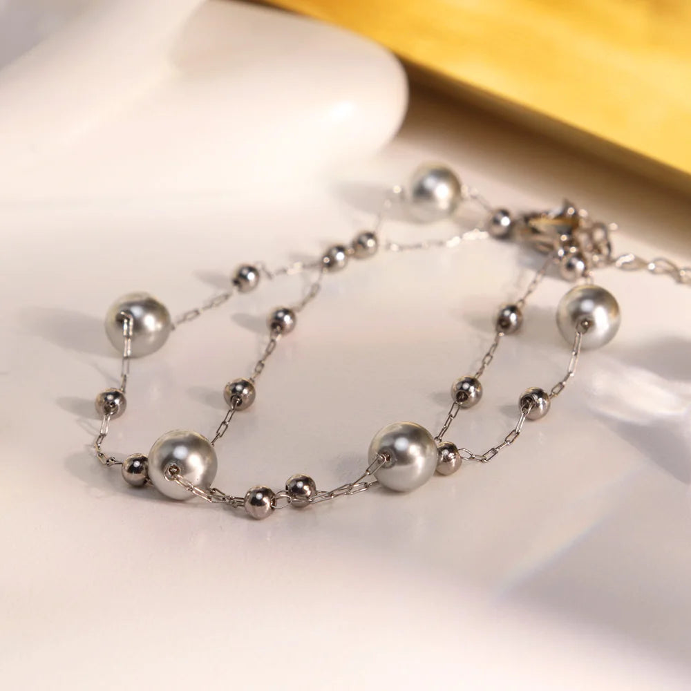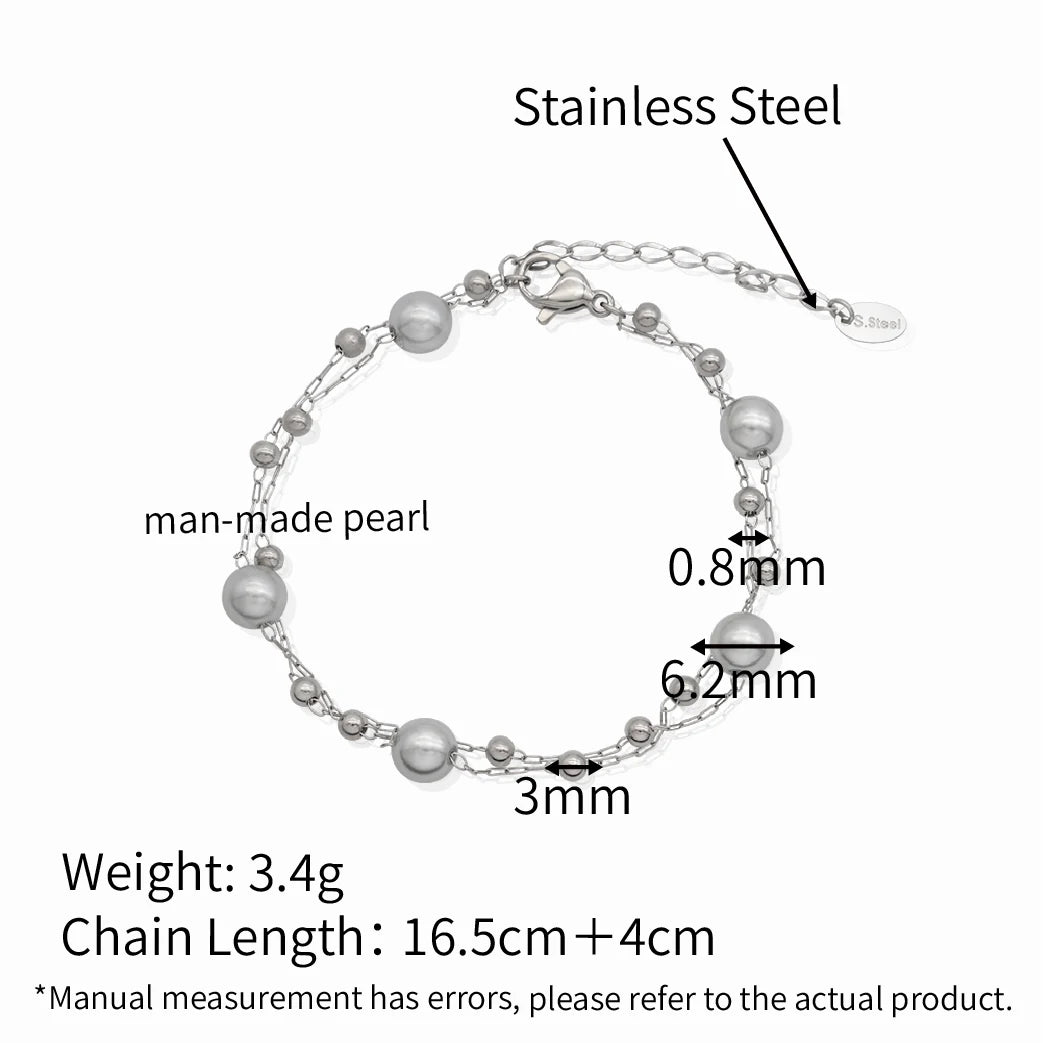 316Lサージカルステンレス ブレスレット チェーン パール【NY00718】