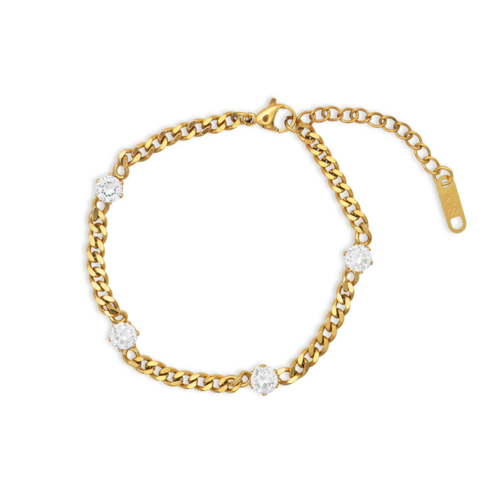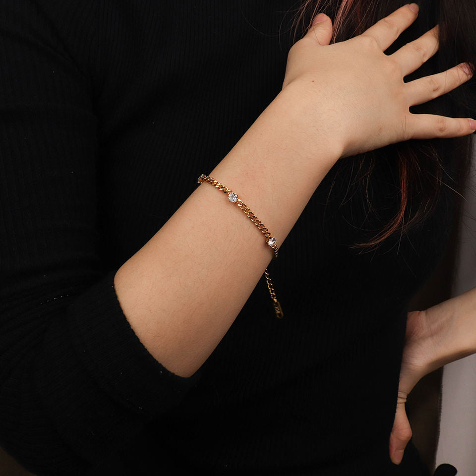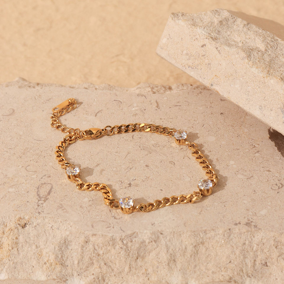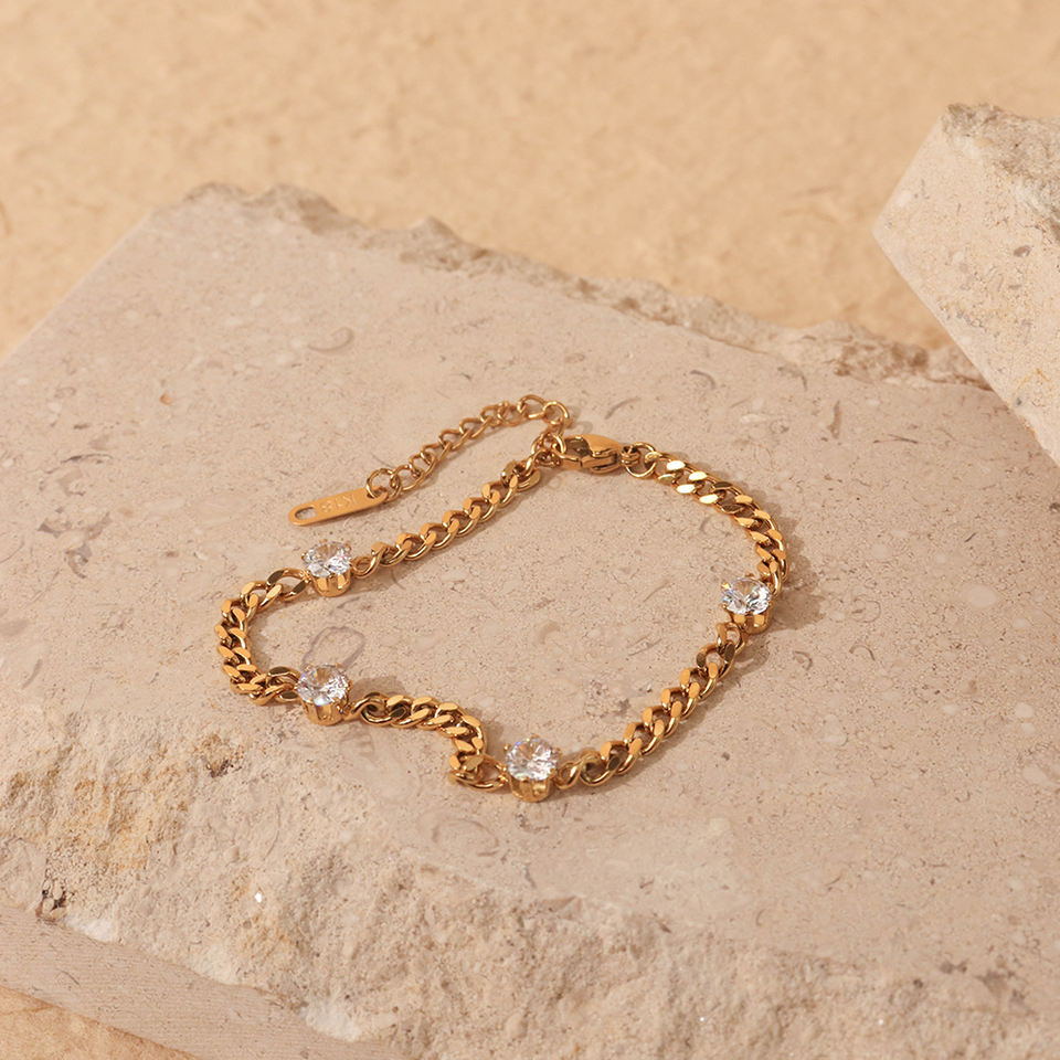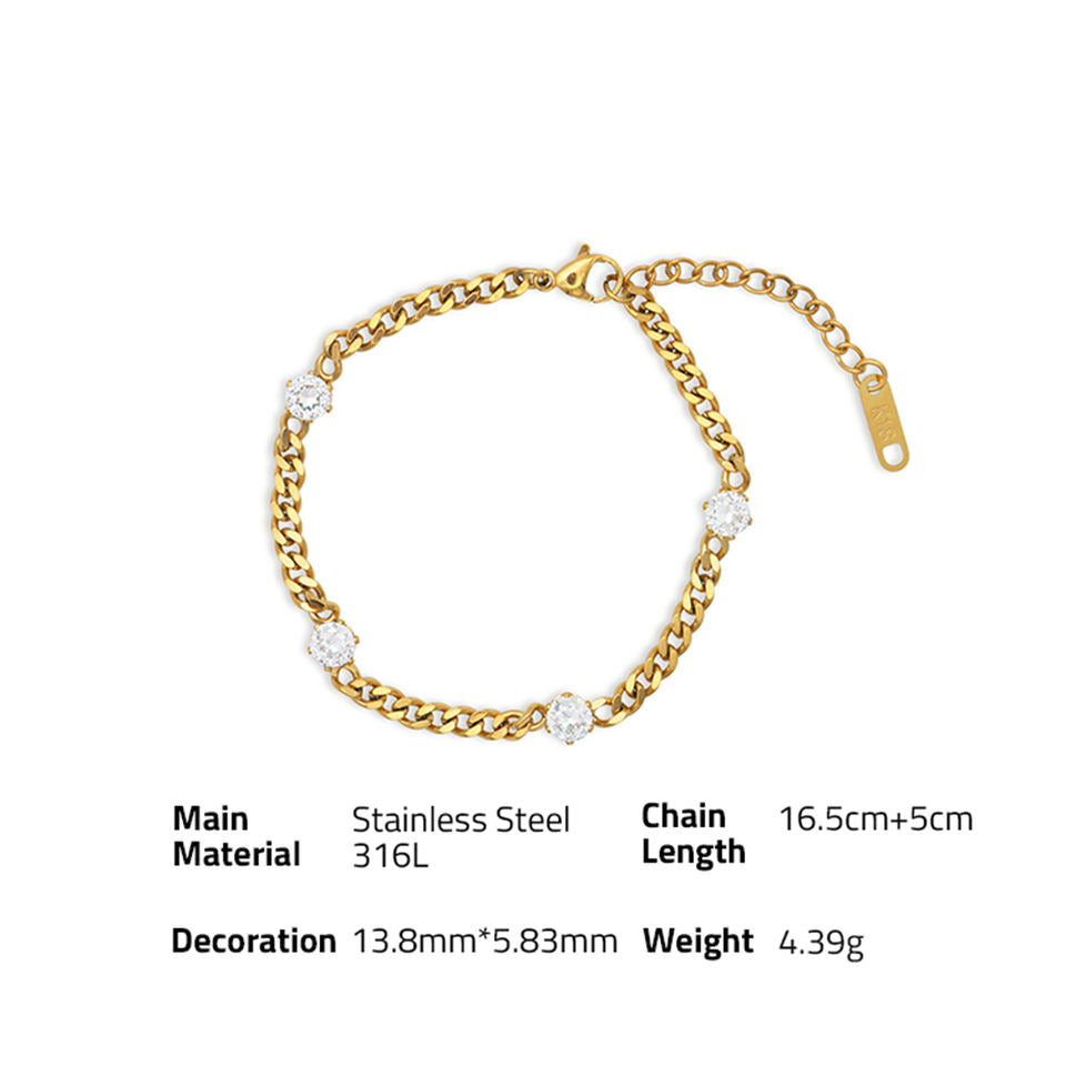 316Lサージカルステンレス 18Kゴールドメッキ ブレスレット チェーン ジルコニア【NY00776】