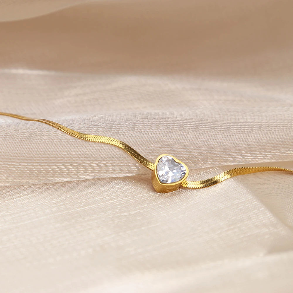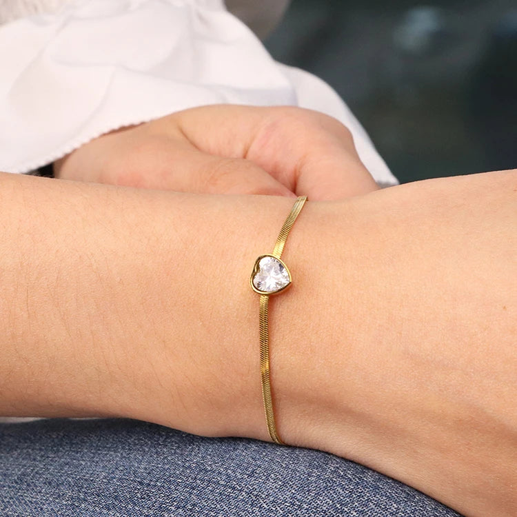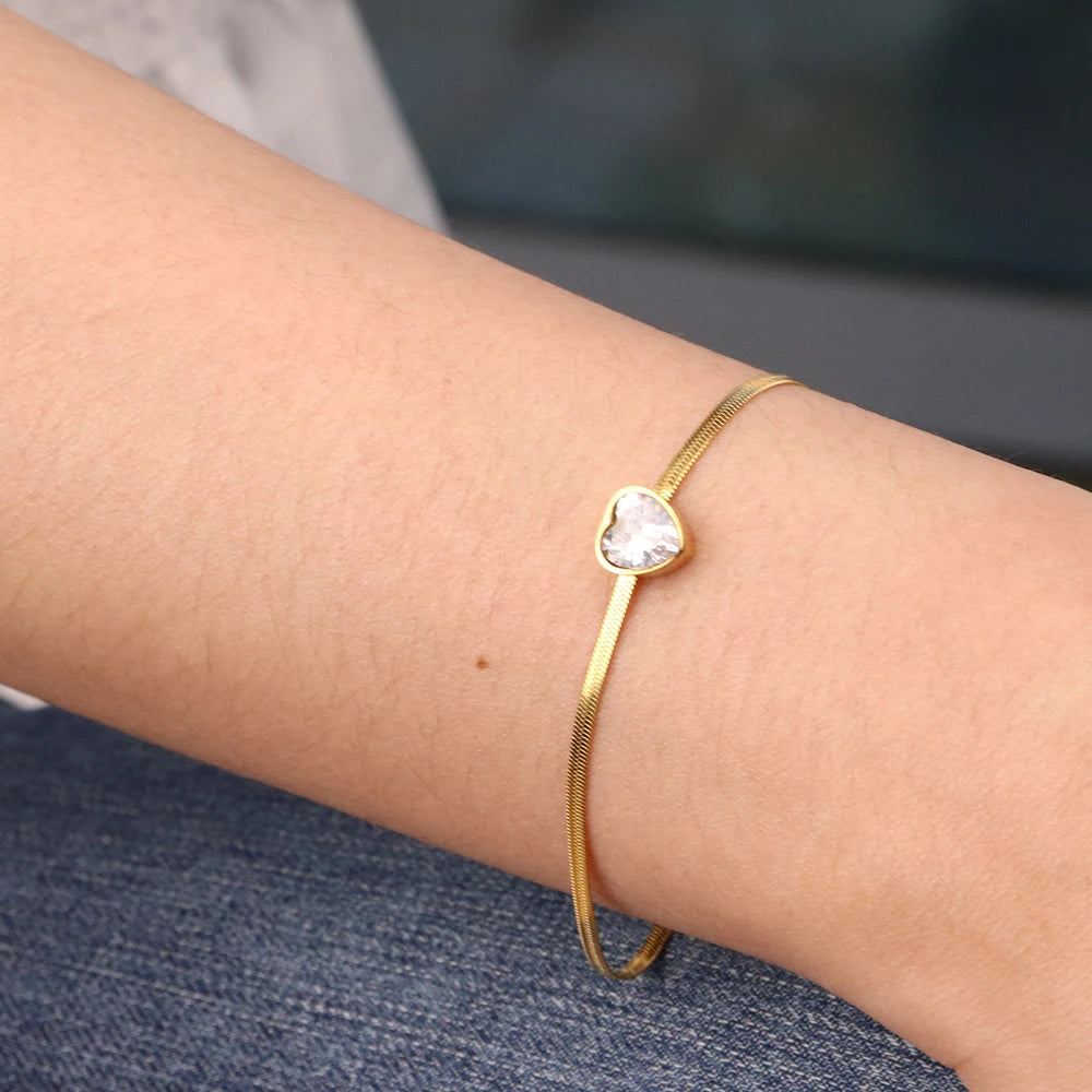 316Lサージカルステンレス ブレスレット ハート ジルコニア 【NY00811】