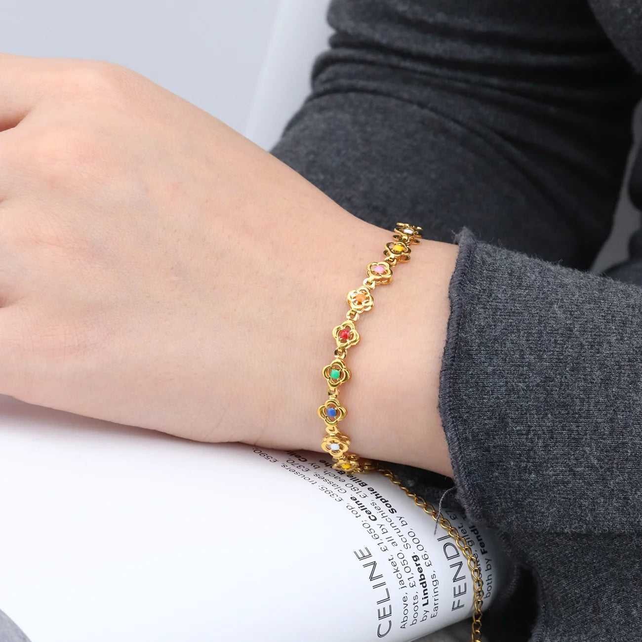 316Lサージカルステンレス ブレスレット フラワー 花 エナメル【NY00813】