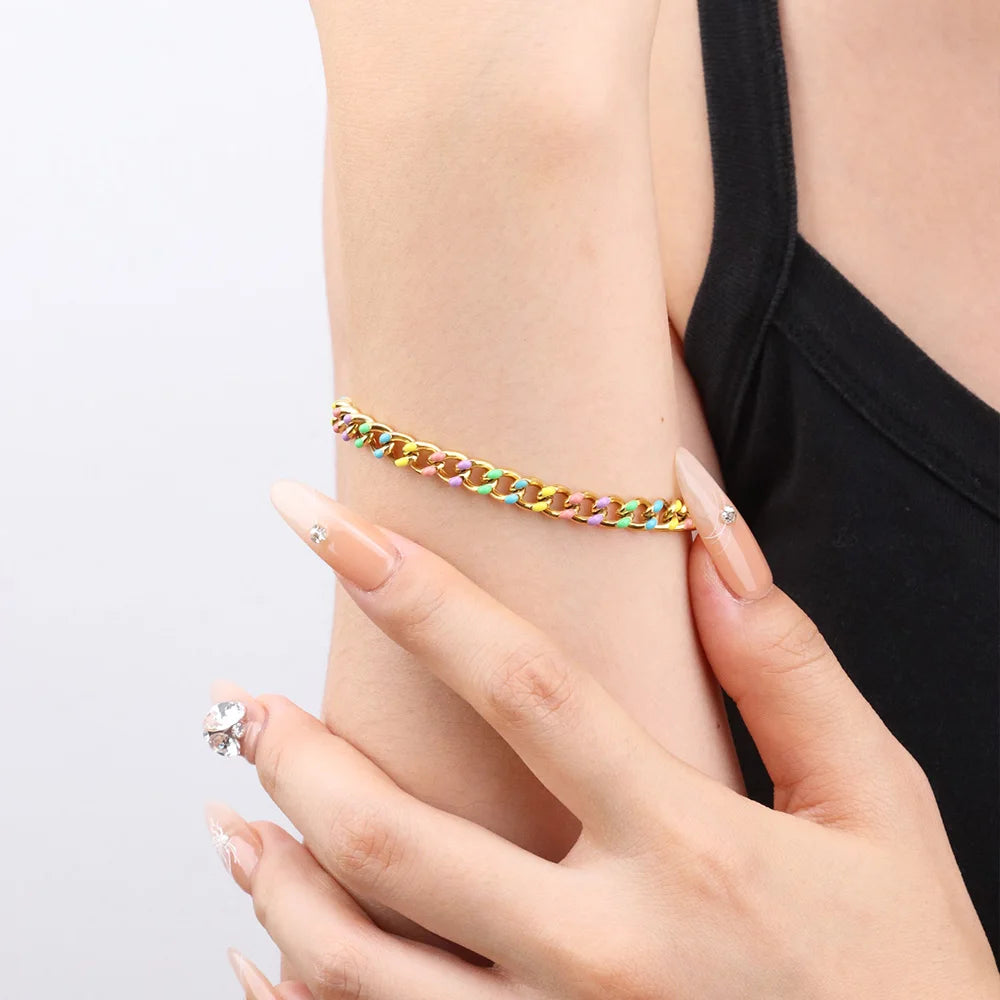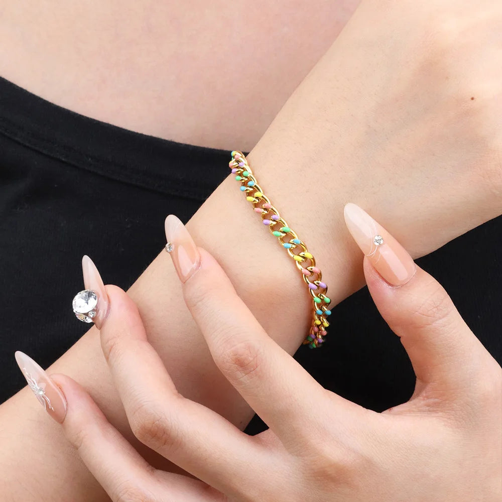 316Lサージカルステンレス ブレスレット キューバンチェーン エナメル【NY00816】