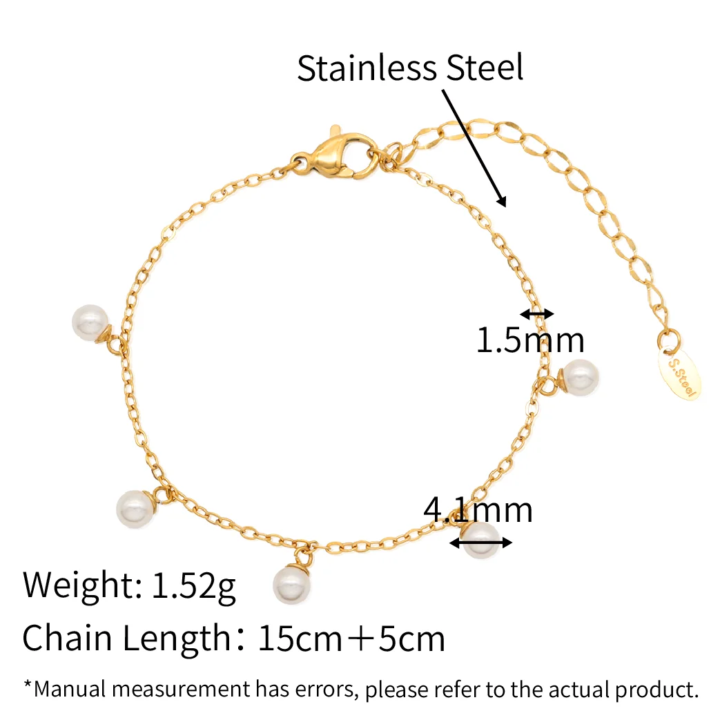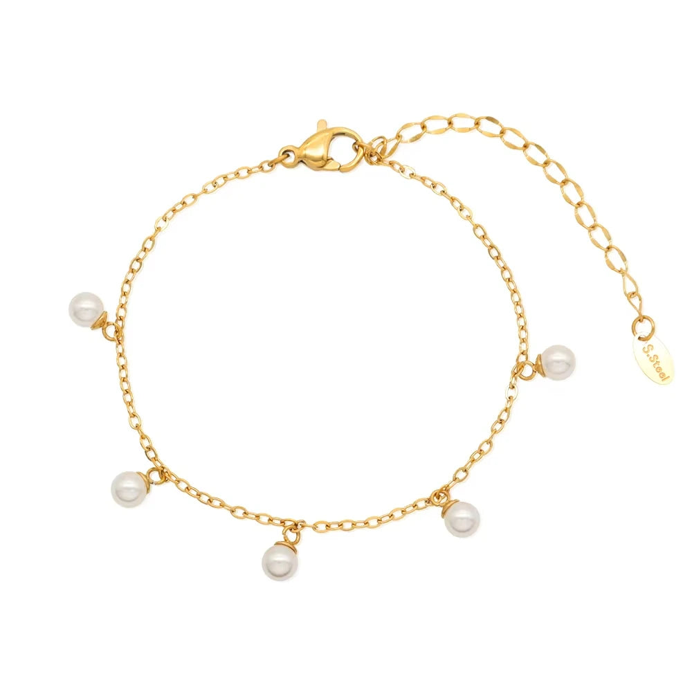 316Lサージカルステンレス 18Kゴールドメッキ ブレスレット パール【NY00849】