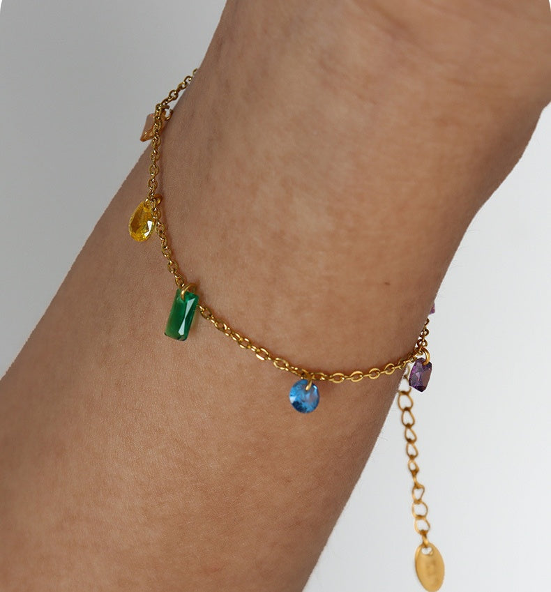 316Lサージカルステンレス ブレスレット チャーム チェーン ジルコニア【NY00875】