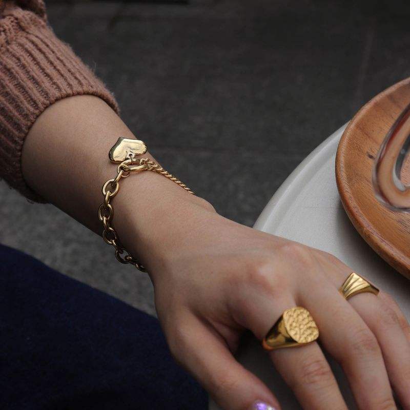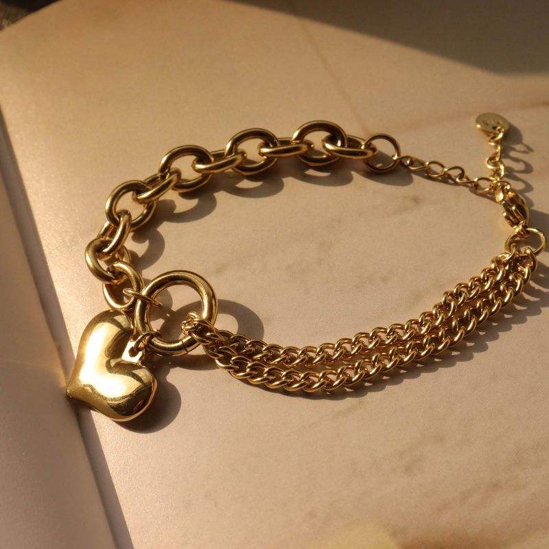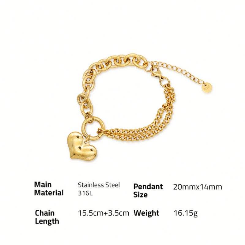 316Lサージカルステンレス ブレスレット チャーム チェーン ハート 【NY00879】
