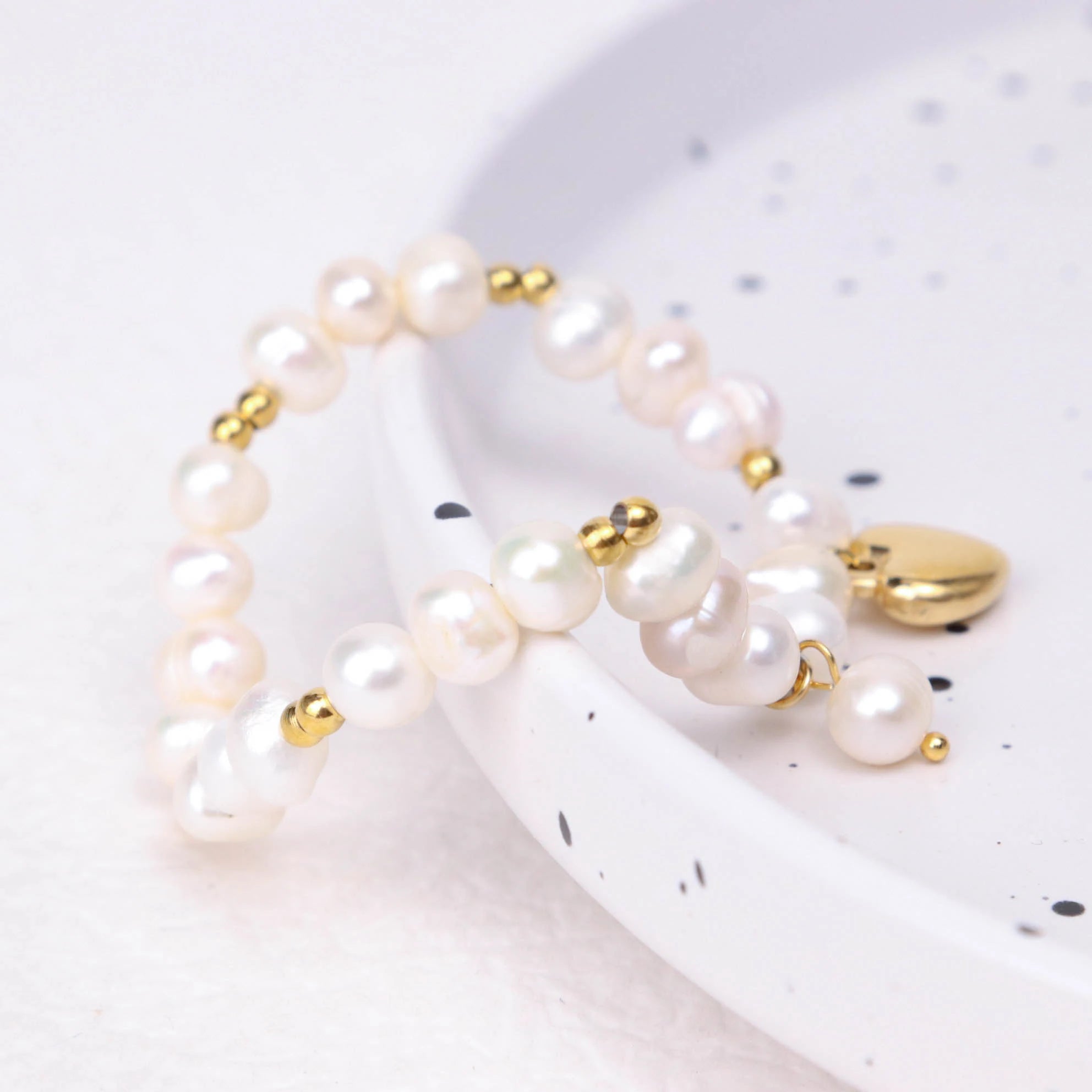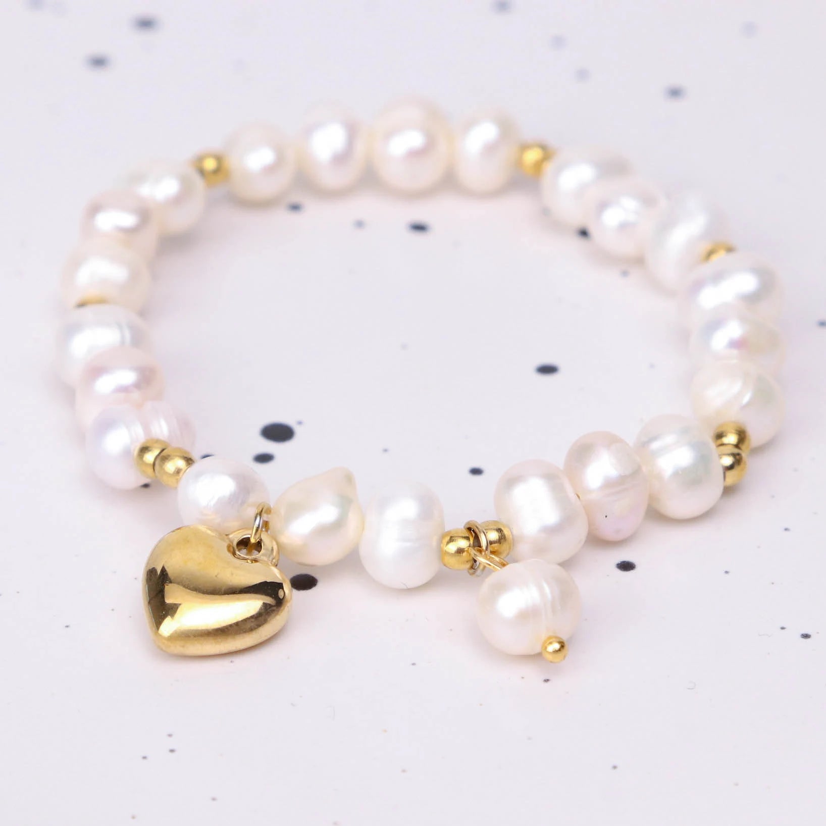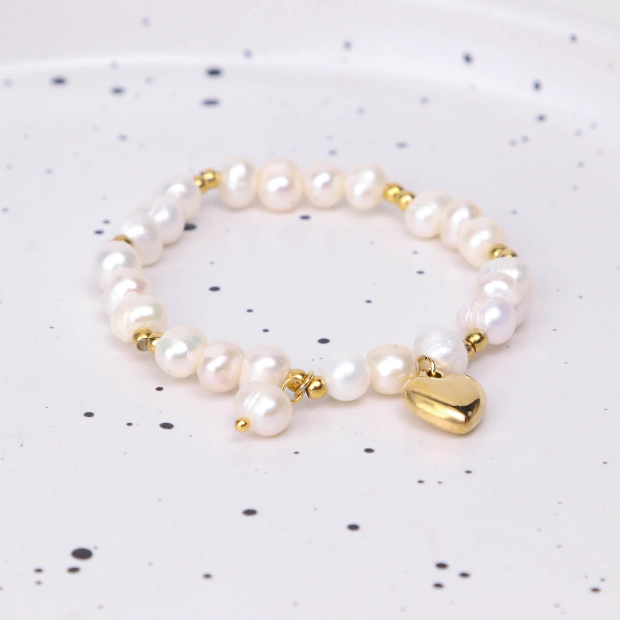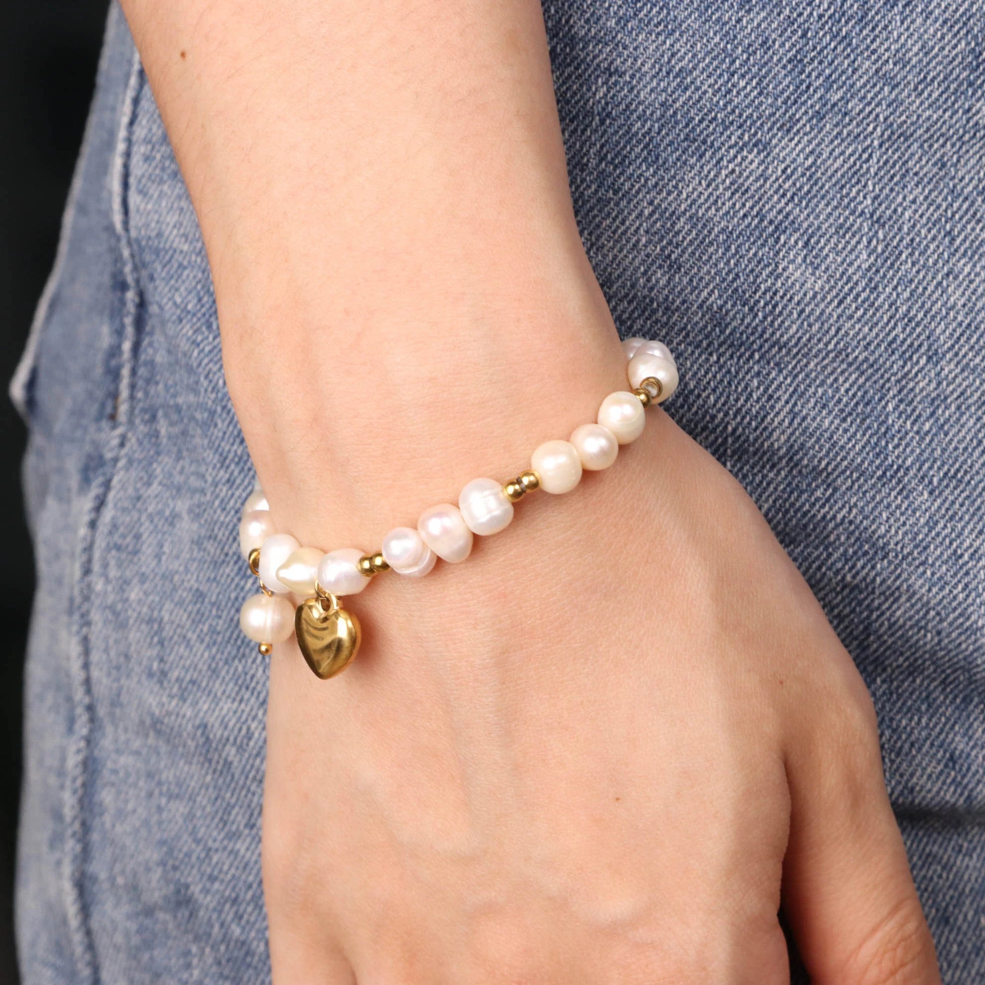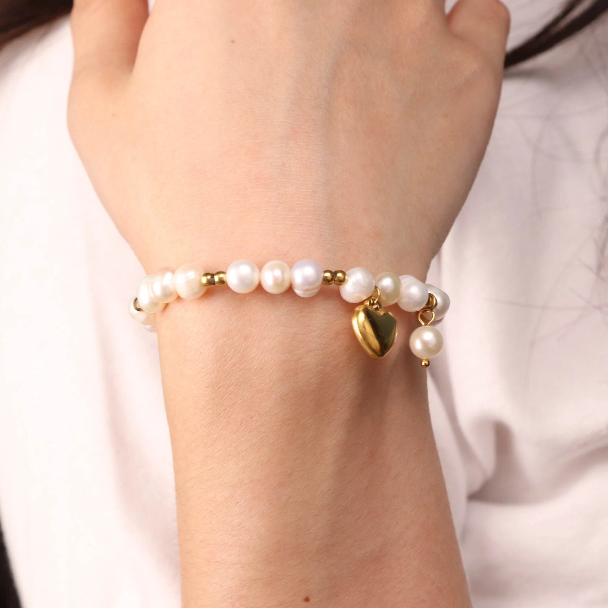 316Lサージカルステンレス ブレスレット チャーム ハート パール【NY01638】